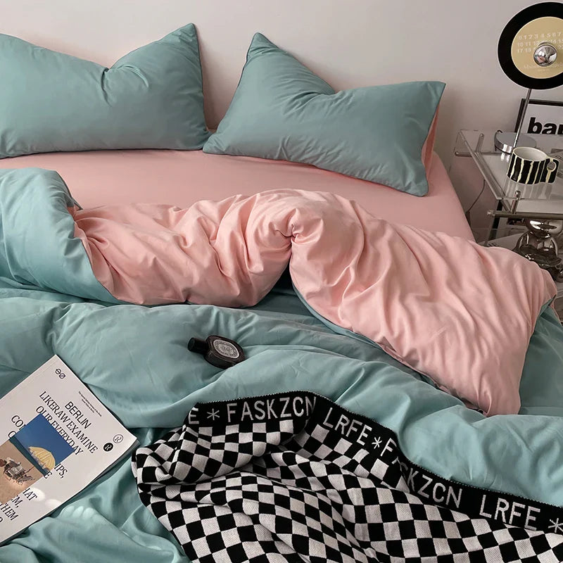 100% Cotton Pink Bedding Set Nordic Chic Duvet Cover Flat Sheet Pillowcase Soft Comforter Cover Bed Linen Boy Girl Home Textiles