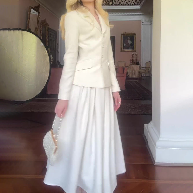 2000s fashion Autumn Fashion Solid Color Lapel Suit High Waist A- line Umbrella Skirt Commuter Two-Piece Suit