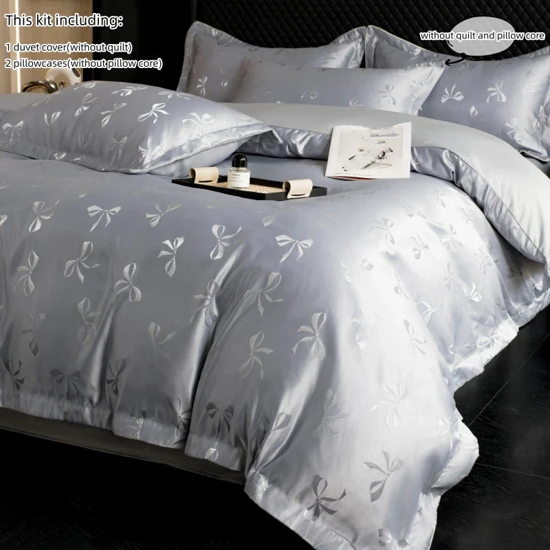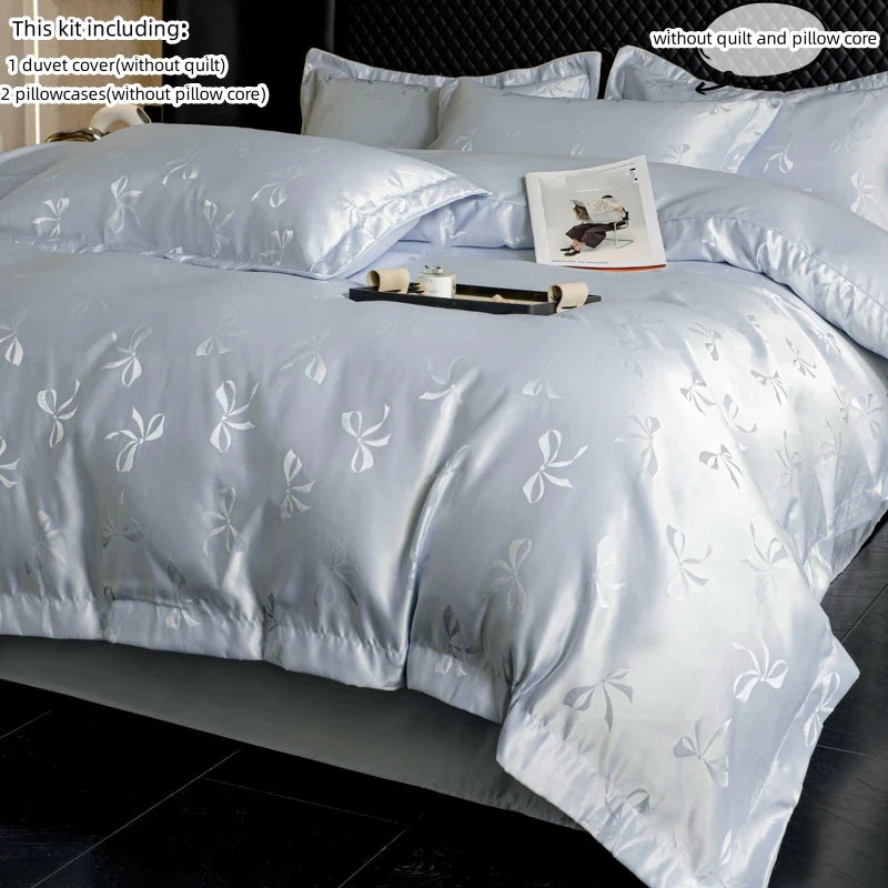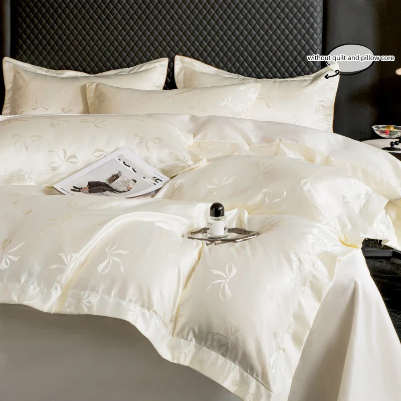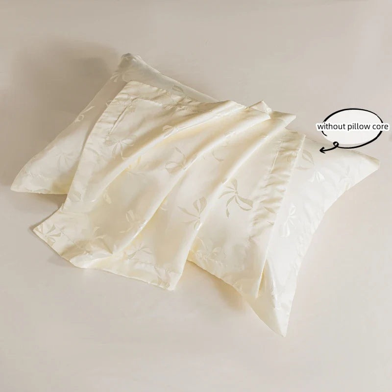 3pcs Cream color Duvet Cover Set (1*Duvet Cover + 2*Pillowcase. Without Core). bow jacquard Bedding Set