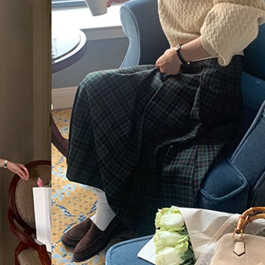 90s fashion Internet Celebrity Homemade Retro Plaid Pleated Skirt Women's Spring and Autumn New Preppy Style High Waist Slimming A- line Skirt