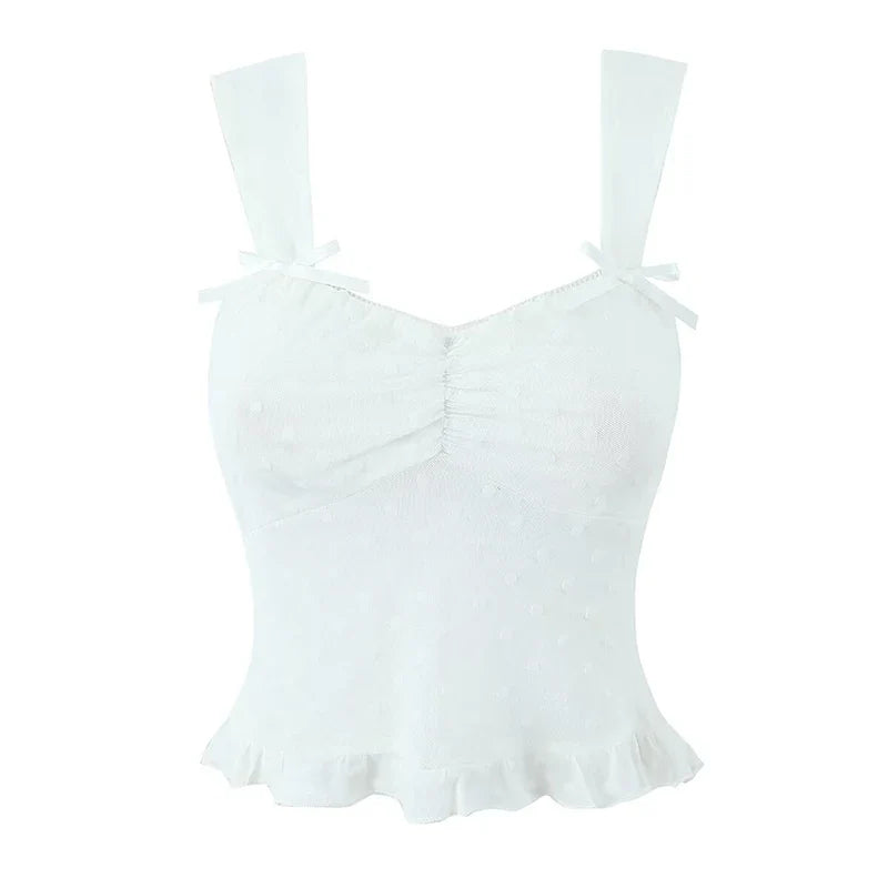 The **Aster Top** is designed to bring elegance and comfort with a stylish twist. Featuring a flattering fit with adjustable tie straps and a flirty ruffled hem. it's a perfect choice for casual and semi-formal occasions. Pair it with your favorite high-waisted jeans or skirts for an effortlessly chic look.