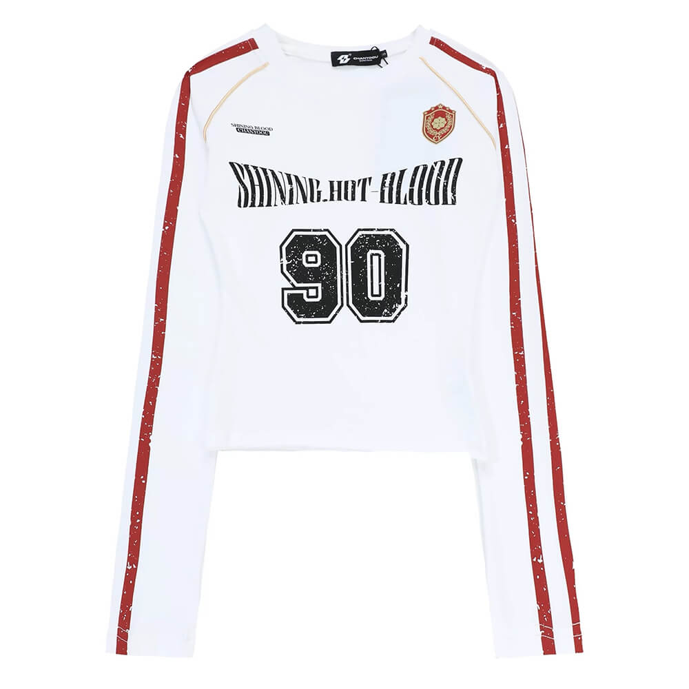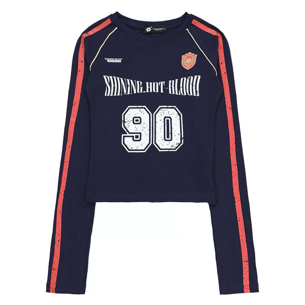 This Blokette long sleeve sports top features a number 90 graphic with contrast stripe details on the sleeves. perfect for casual aesthetic outfits
