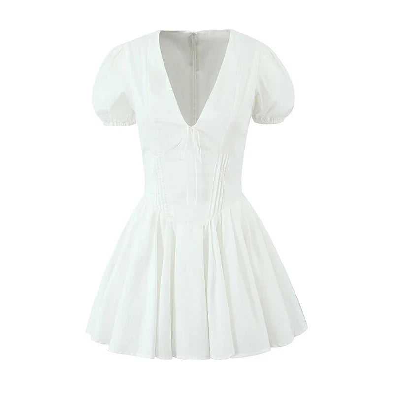 The "Bonjour Baby Dress" offers a charming. flirty look with its soft white color and flattering fit. Perfect for casual outings and romantic evenings.