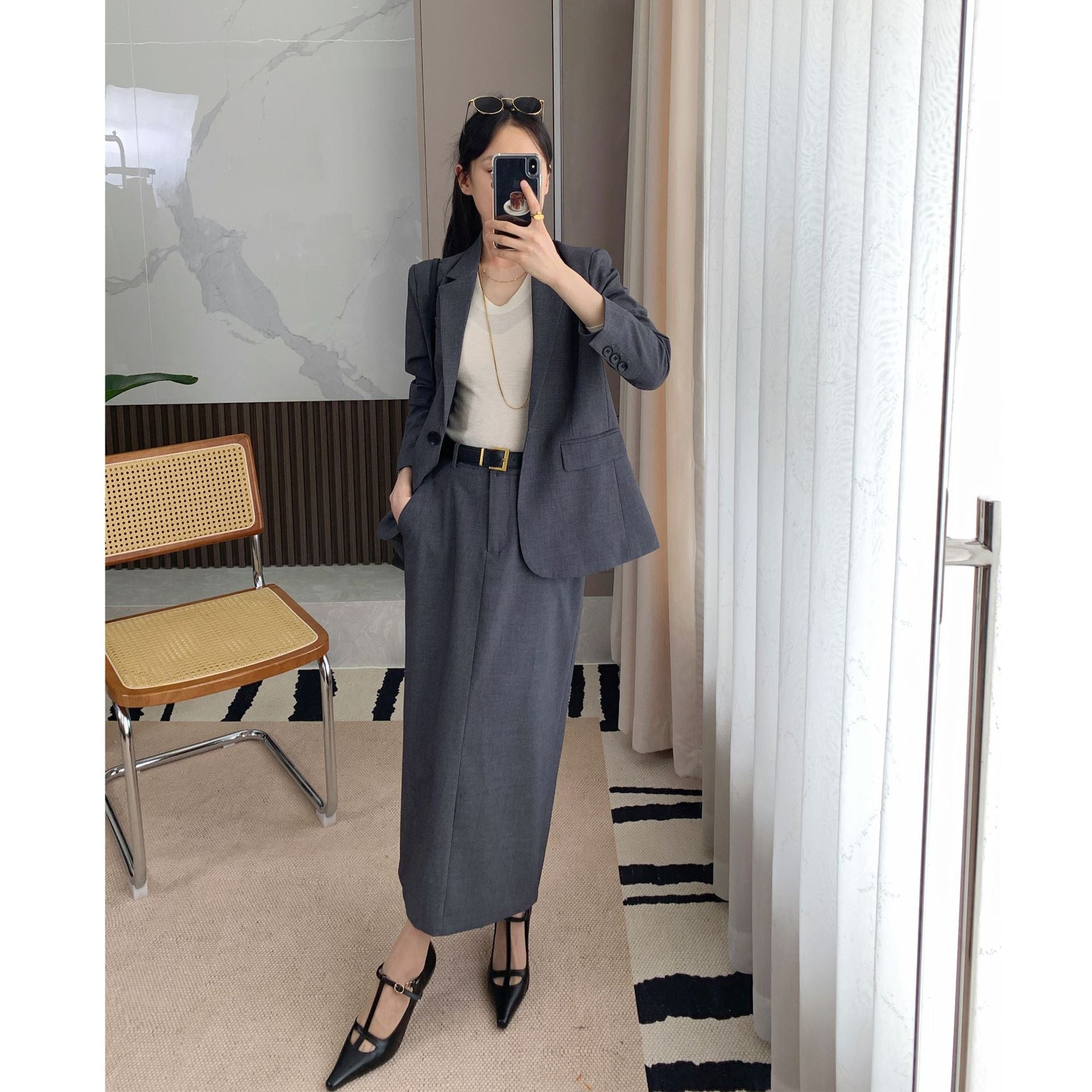 buisnesscore outfit women Th Home Light Luxury! Three-Dimensional Cut Wool Blended Slim Fit Slimming One Button Suit Jacket Skirt Suit Women
