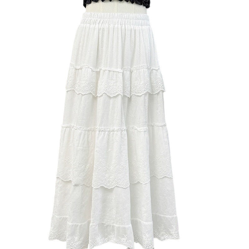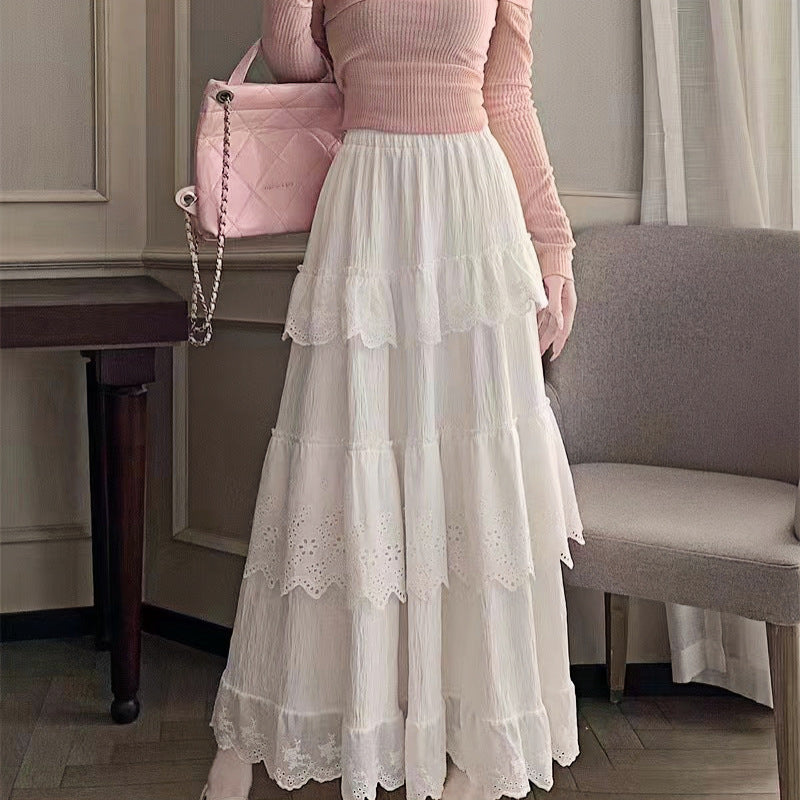 church outfit Spring 2024 New French Gentle Style Lace Stitching Ruffled Cake Skirt Western Style All-Match Fairy Skirt