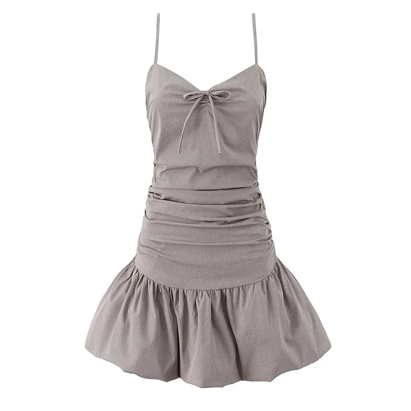 The Dinner Party Dress is a playful yet elegant mini dress featuring a ruched bodice and a flared hemline. Perfect for dinner dates or special events. it's available in a timeless design that complements any occasion.