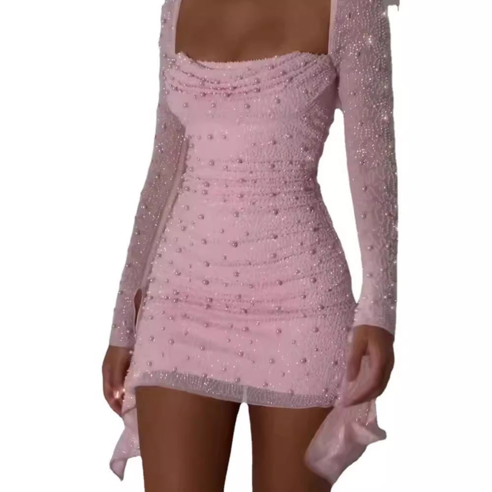 drag dress to impress Sexy Party Women's Beaded Design Slim-Fit Sheath Dress