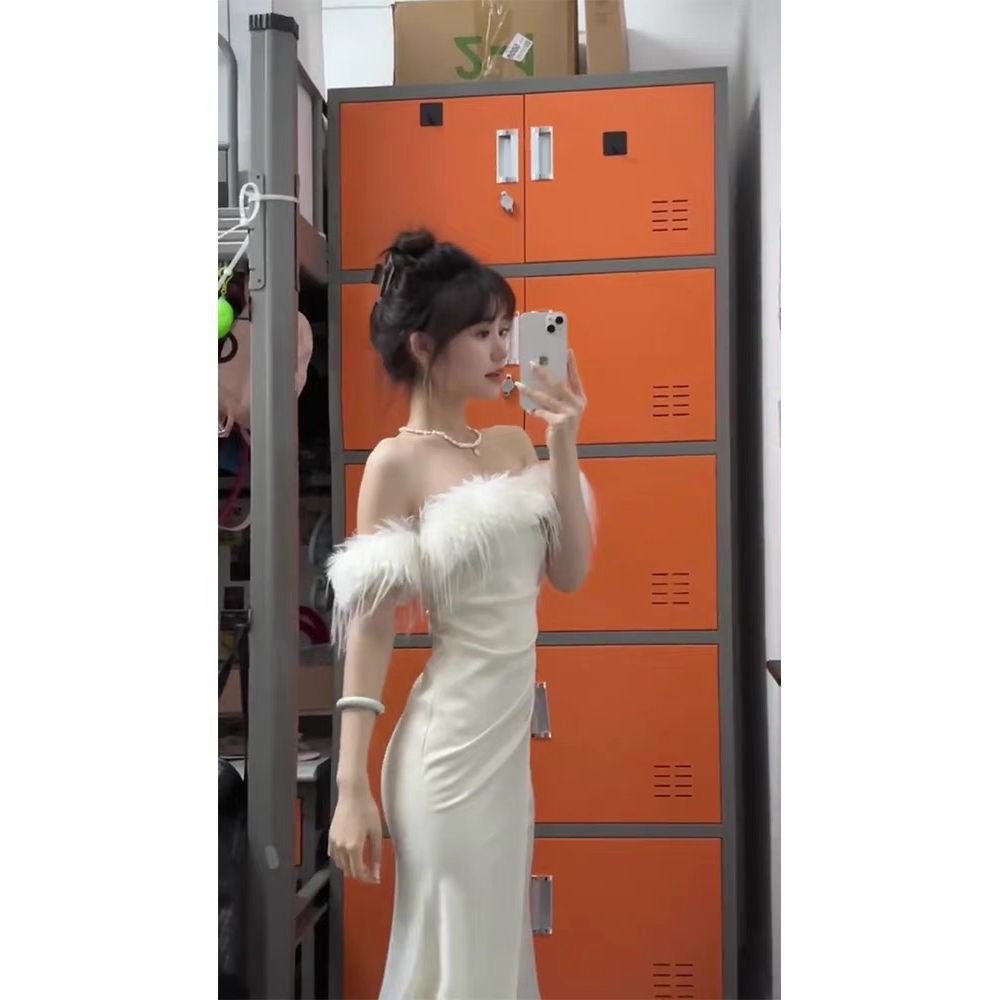 dresses White Dress High-End Light Luxury Niche French Temperament off-Shoulder Dress Women's Autumn Birthday Dress
