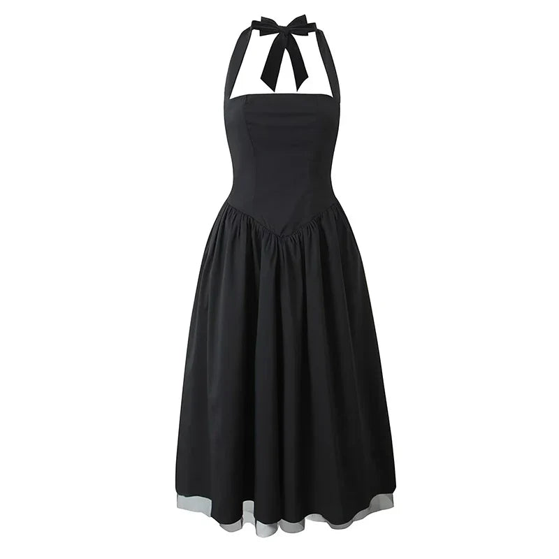 The Emerald Maxi Dress is a timeless and elegant halter-neck dress featuring a cinched bodice and a flowing maxi-length skirt. Its back-tie detail adds a touch of sophistication to any occasion.