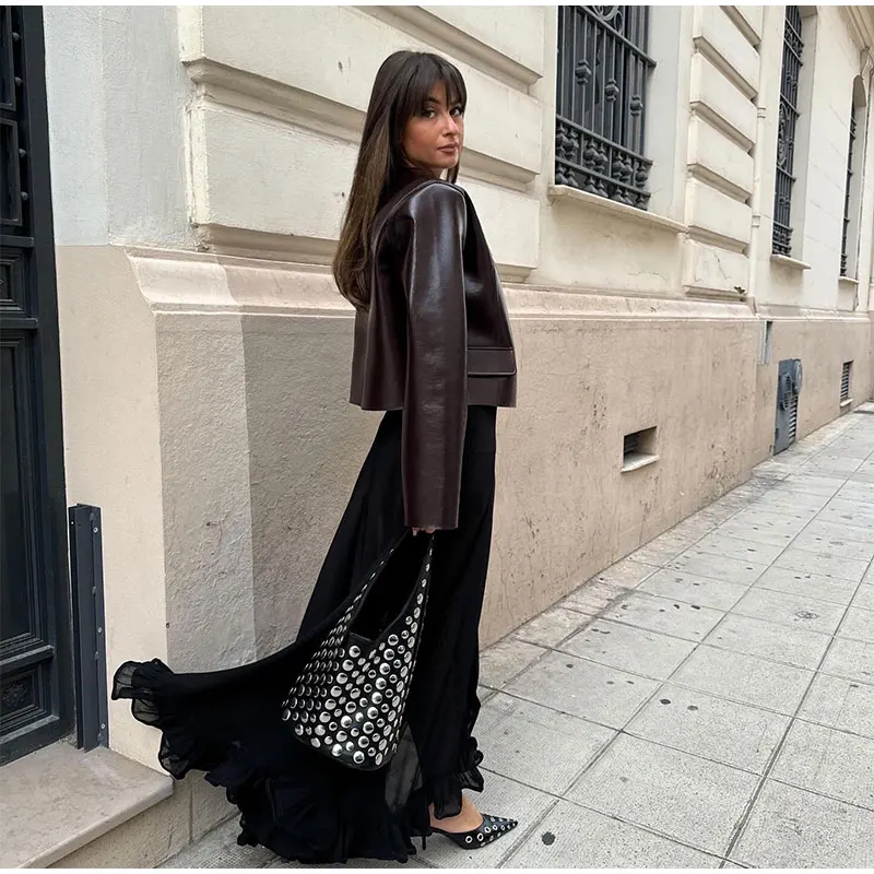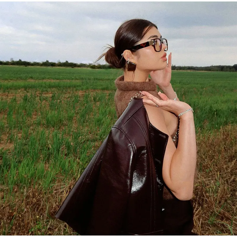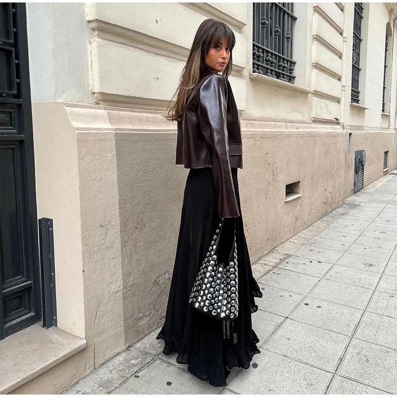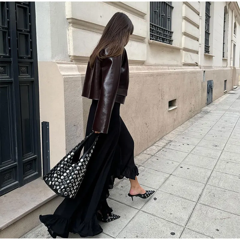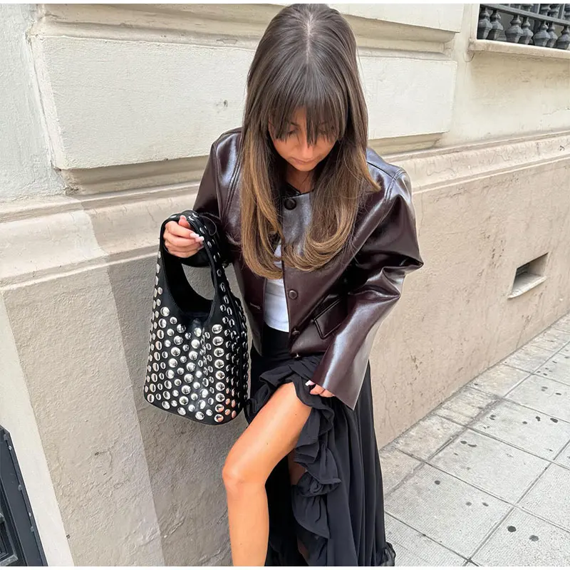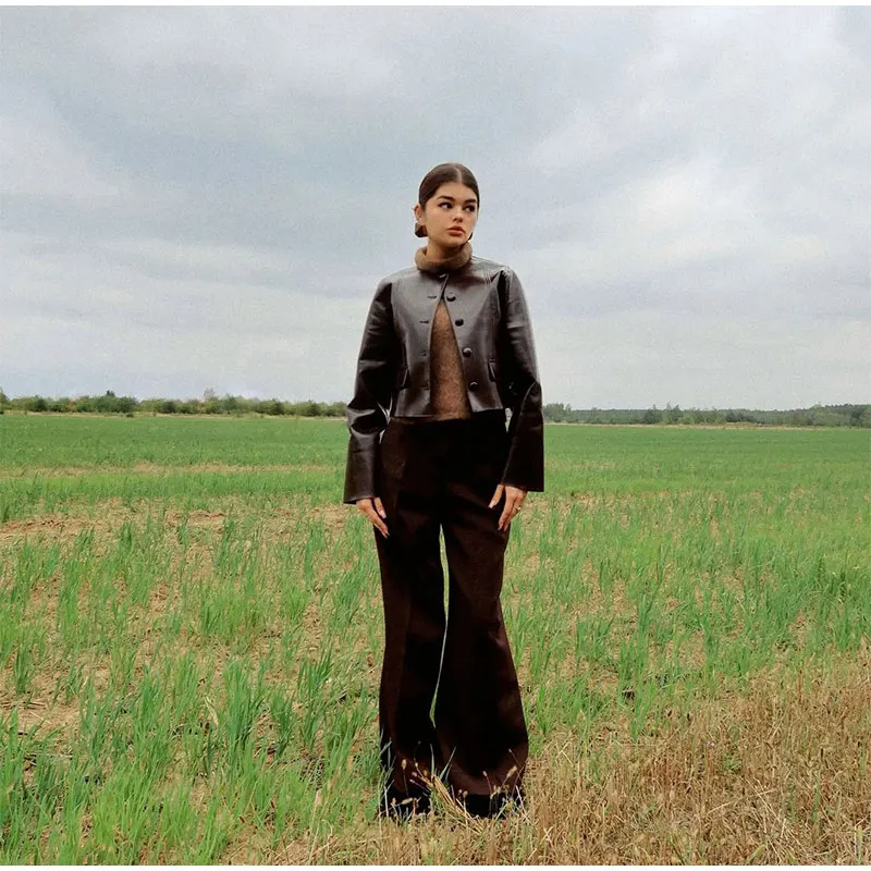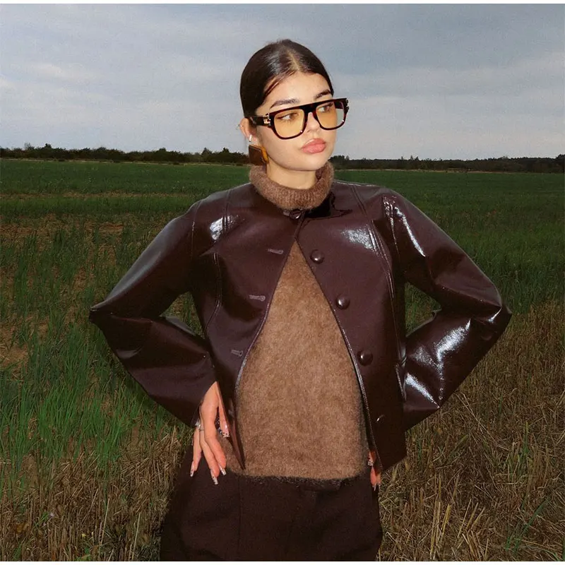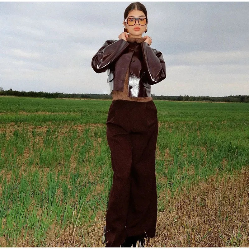 Model Number: Fashion O-neck Pu Leather Jacket 2 Piece Sets For Women