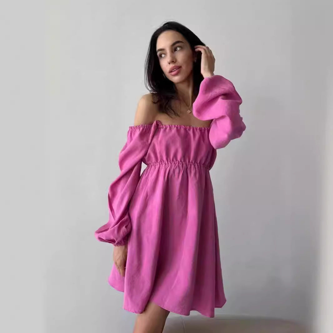 freshman hoco dresses 2024 New Women's Square Collar Dress Long Sleeve Puff Sleeve A- line Casual Dress