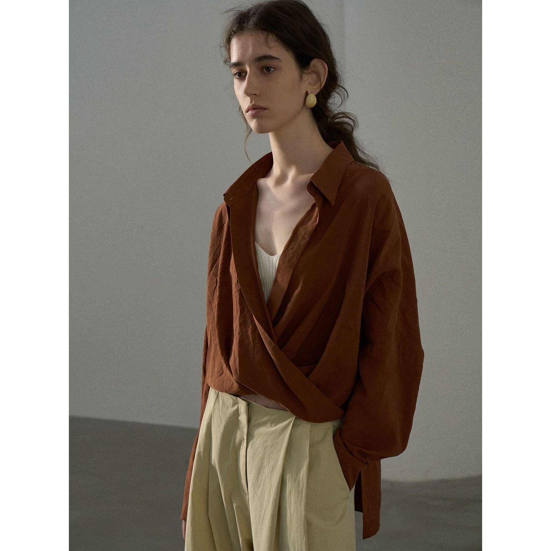 hipster dress to impress Colne Autumn New Commuter Imitation Copper Ammonia Cross Slim Slimming Top Shirt C4420