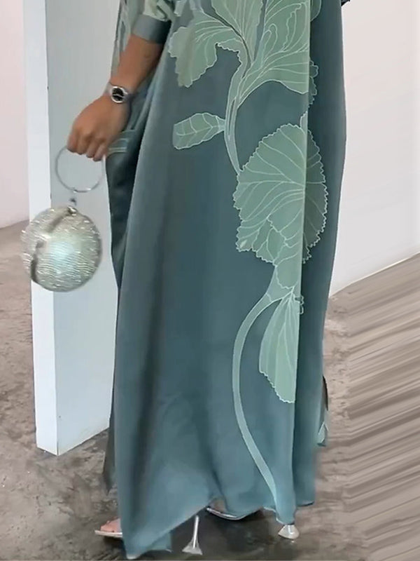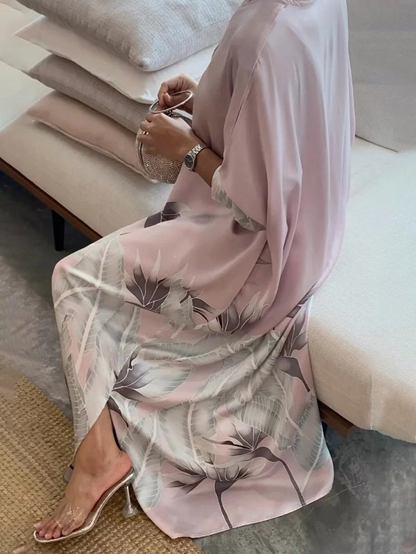 | Feature | Muslim . Leaves Print . Flower Print . Buttoned . Contrast Color . Split-side |