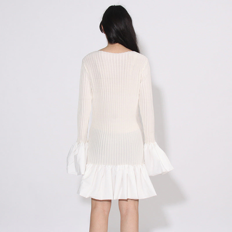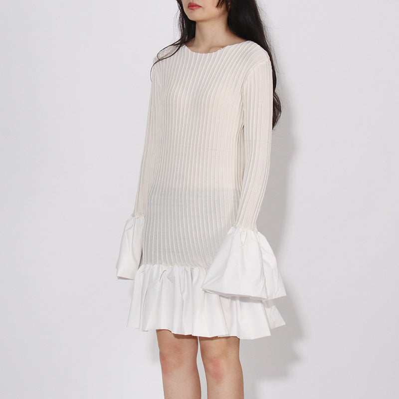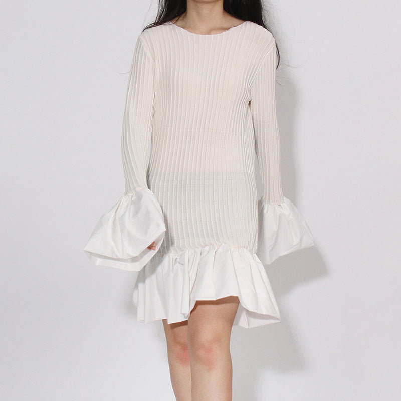 long sweater dress outfit Sexy Women's Summer Dress 2024 Simple High-Grade Bell Sleeve Pleated Solid Color Skirt