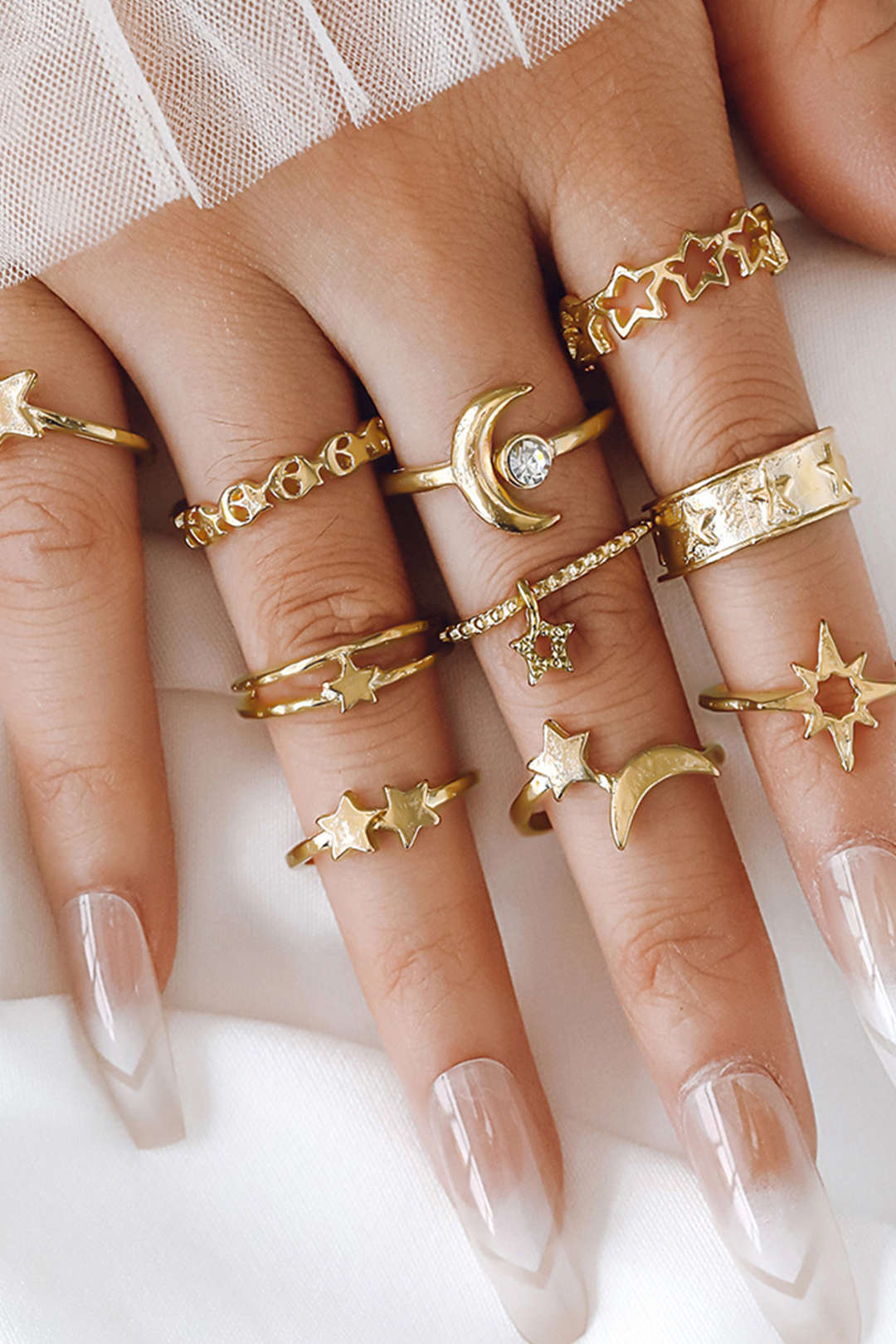 Set of 10 Star & Moon Rings