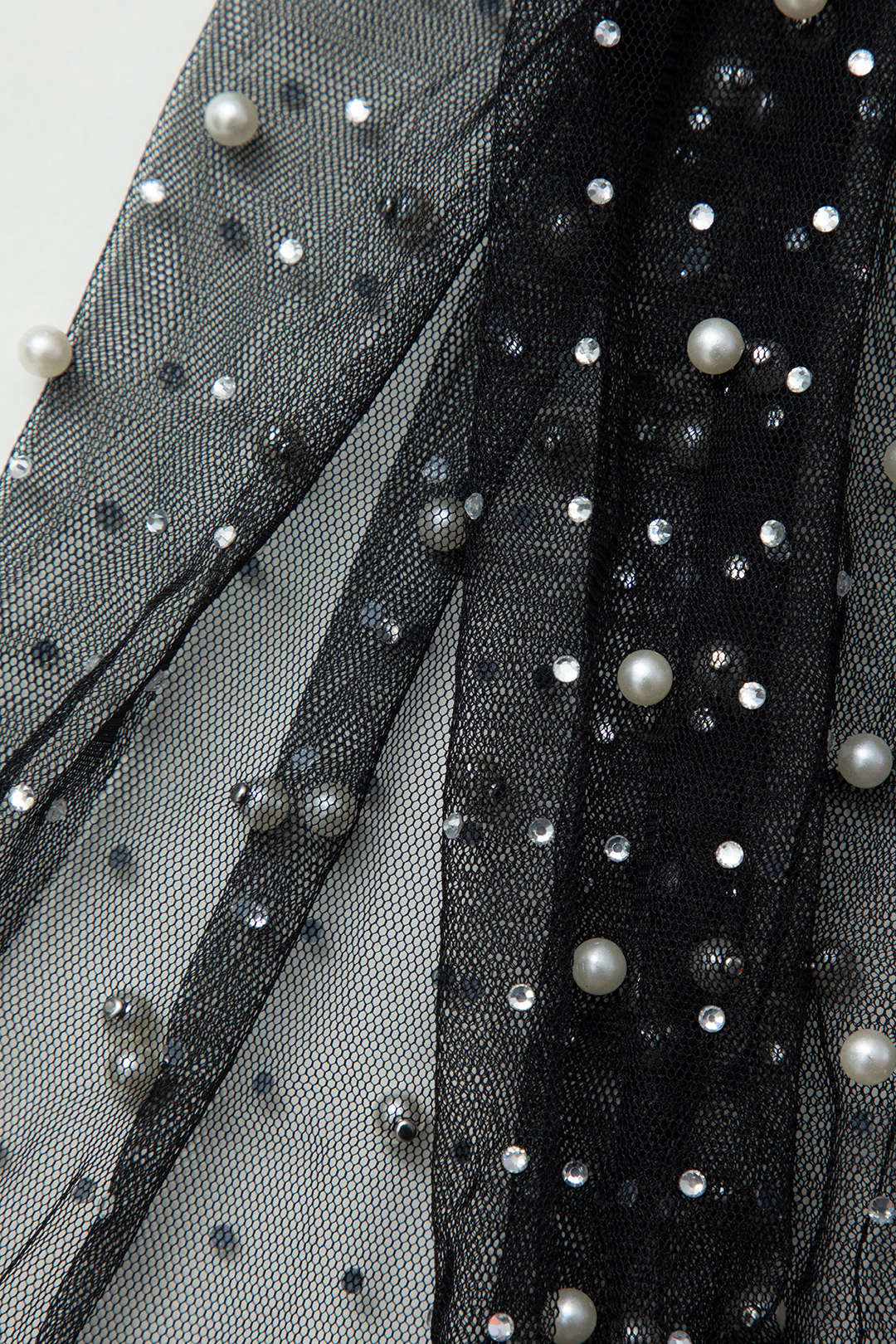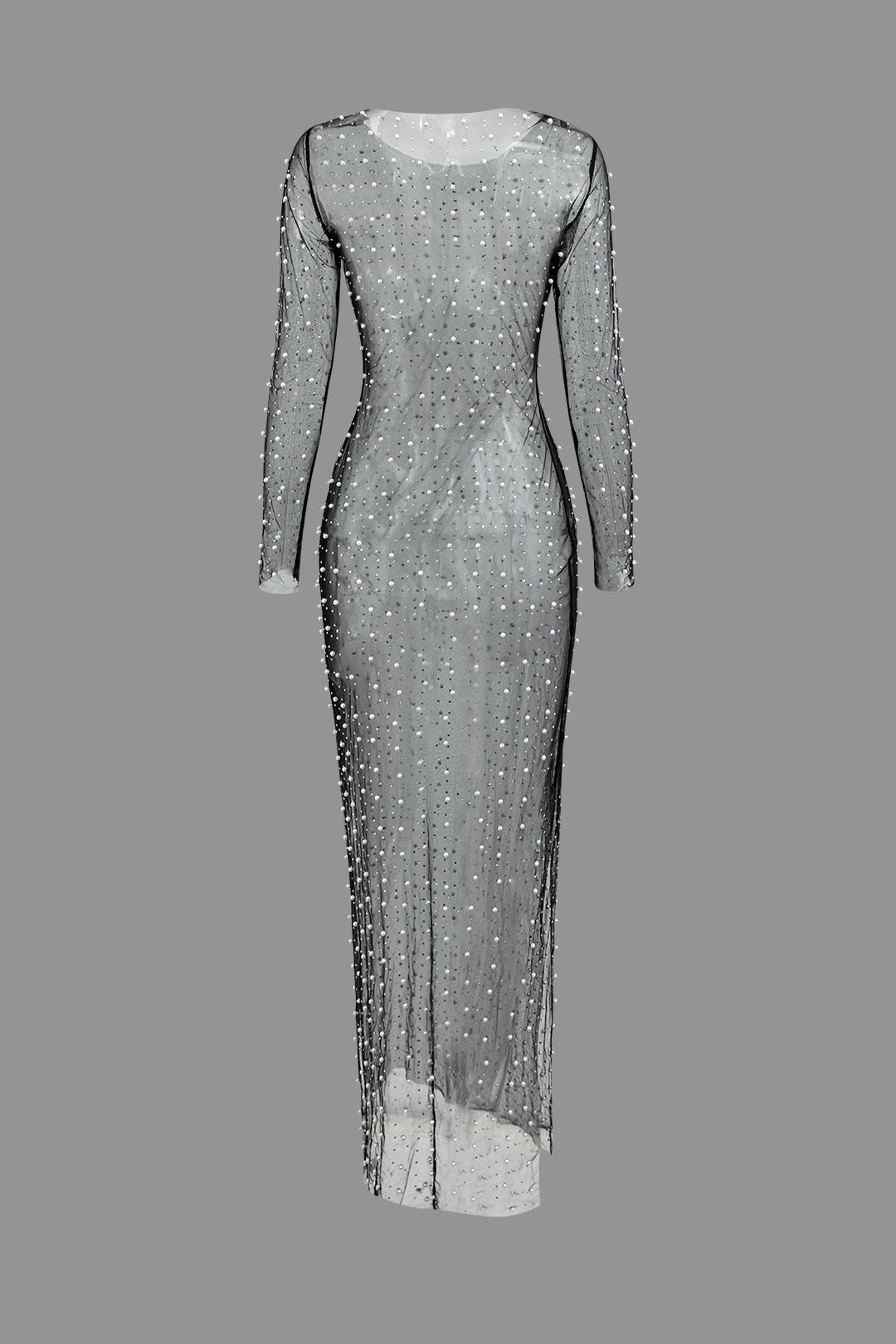 Sheer Mesh Pearl & Rhinestone Decor Maxi Dress
