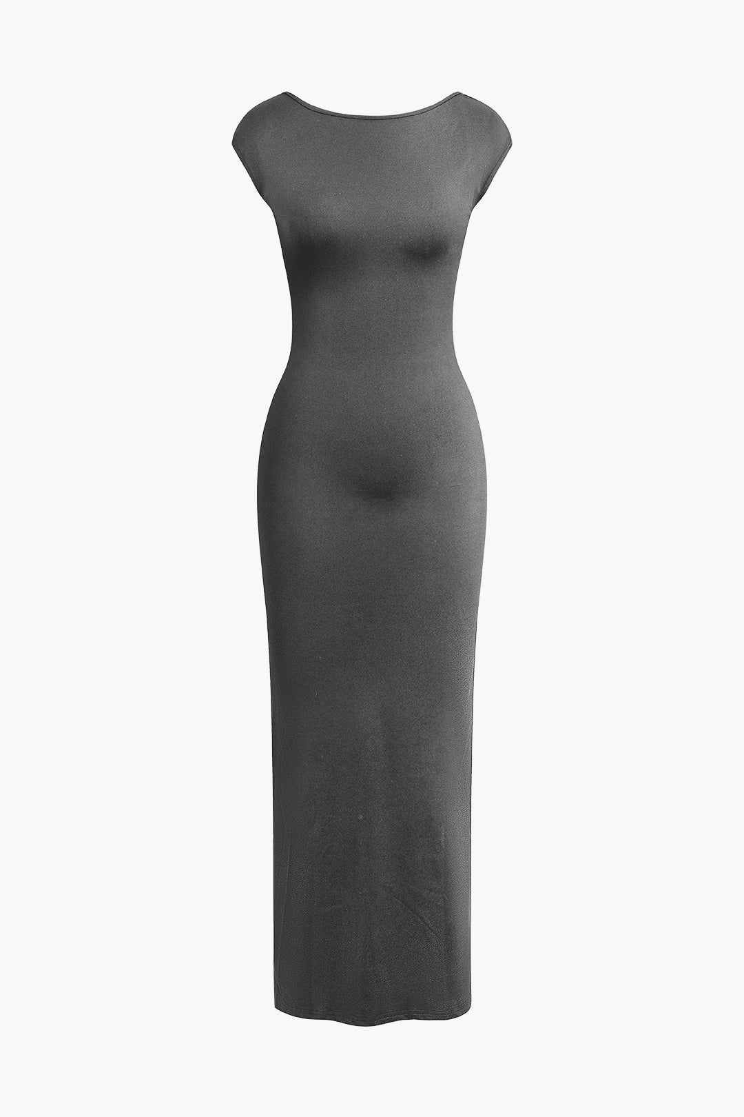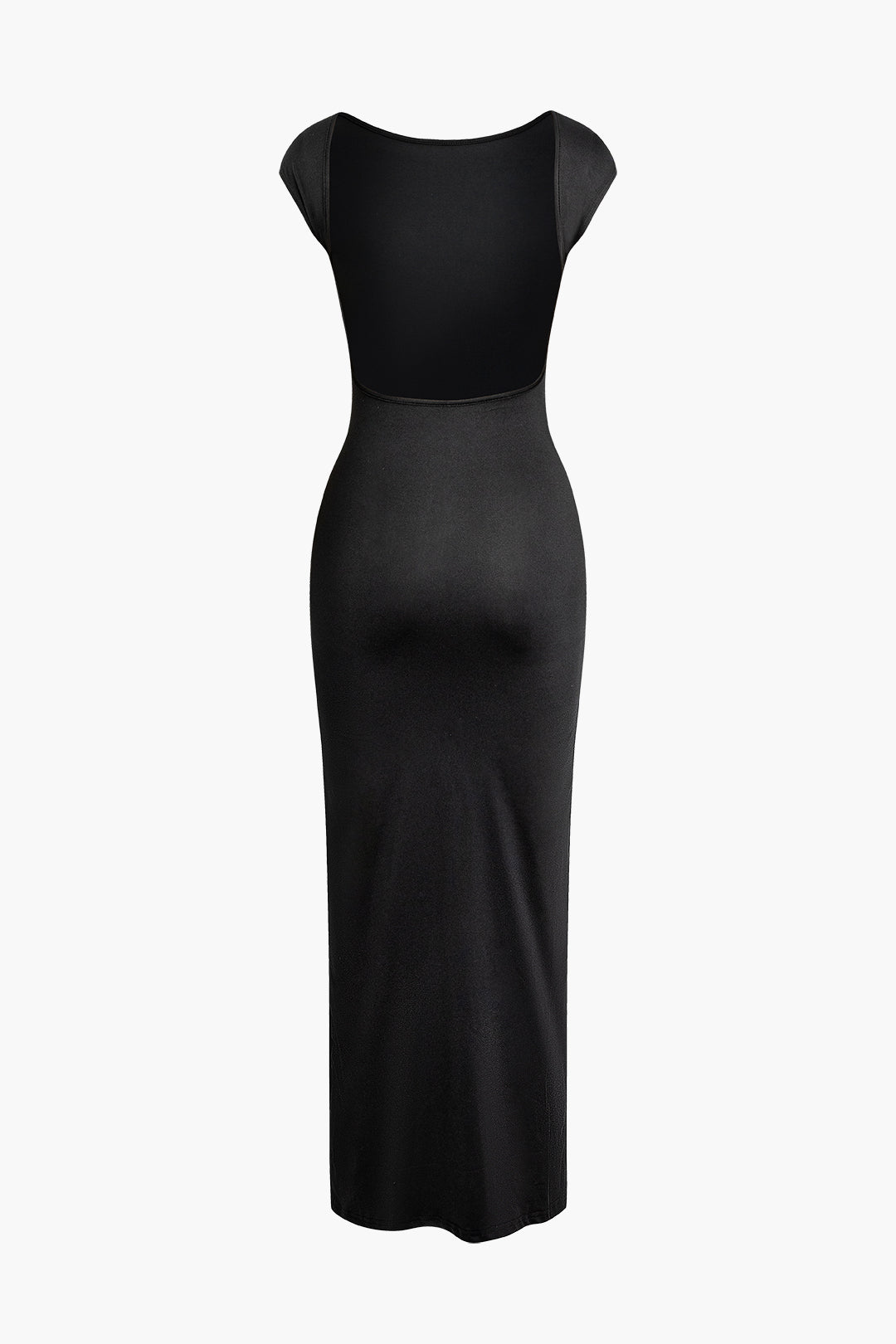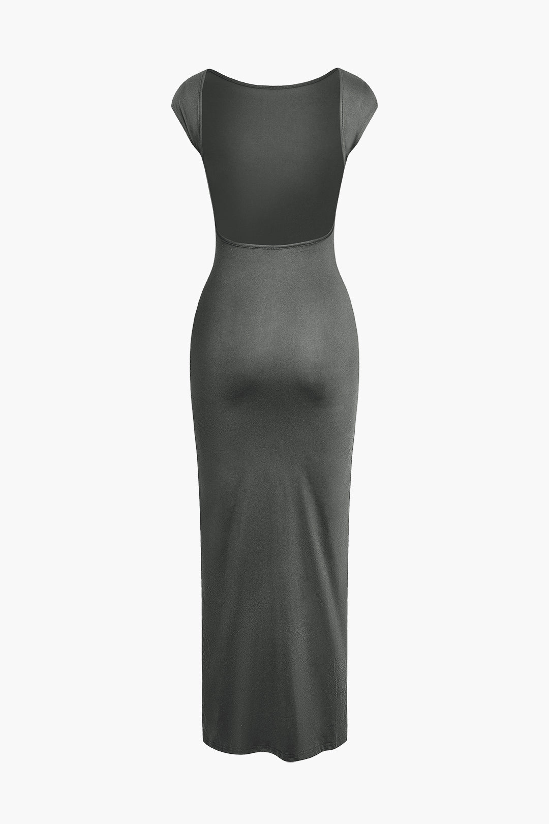 Solid Backless Short Sleeve Maxi Dress