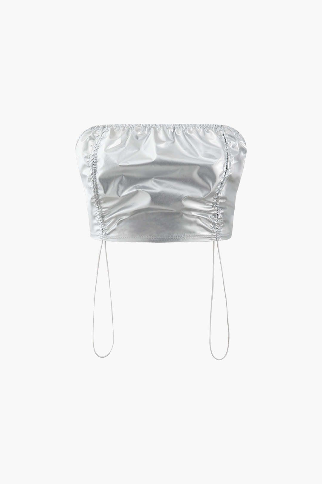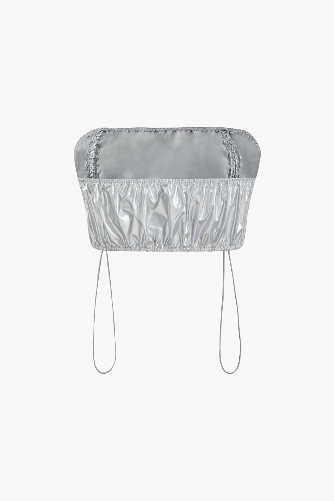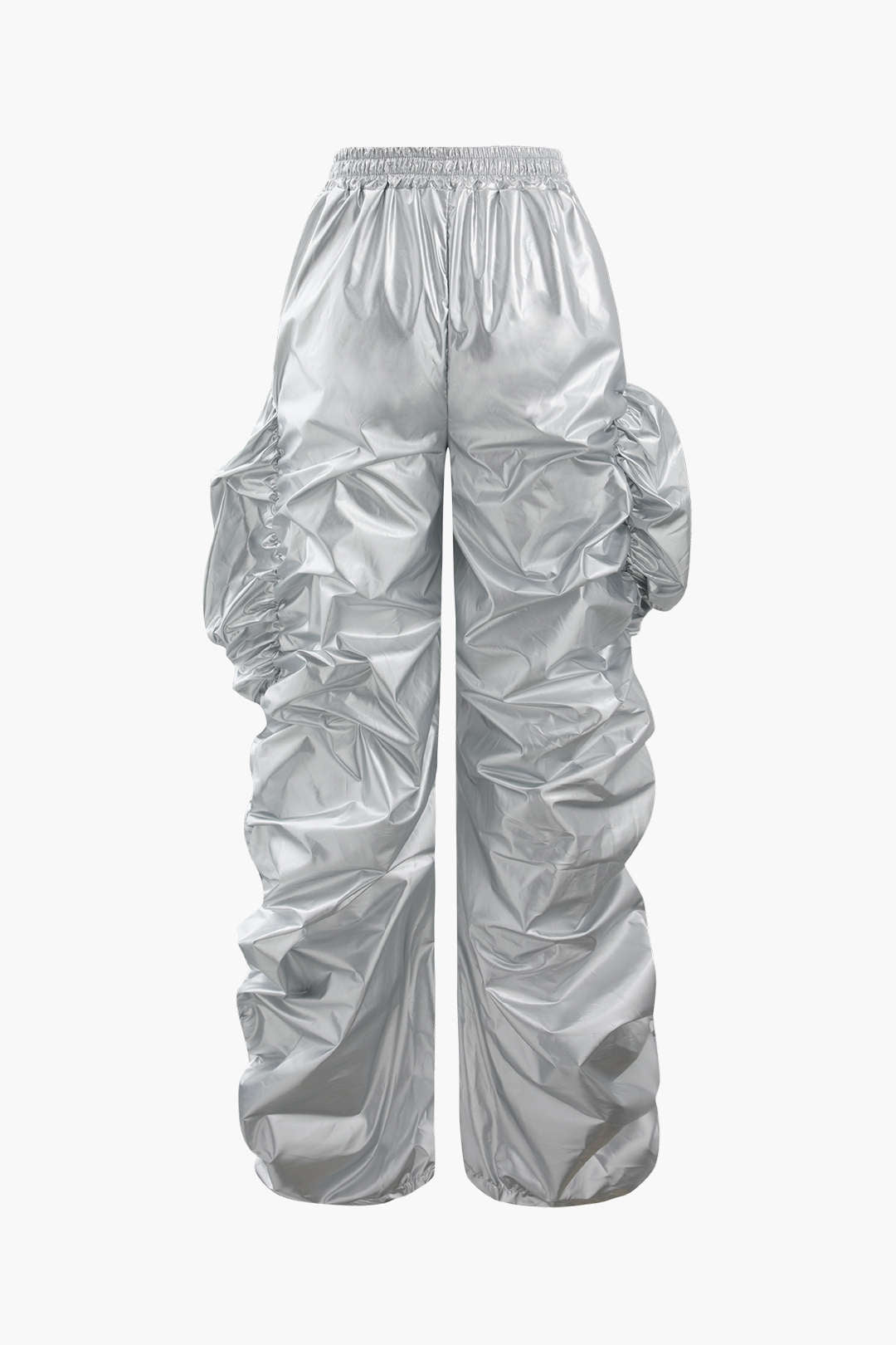 Metallic Drawstring Tube Top And Gathered Wide Leg Pants