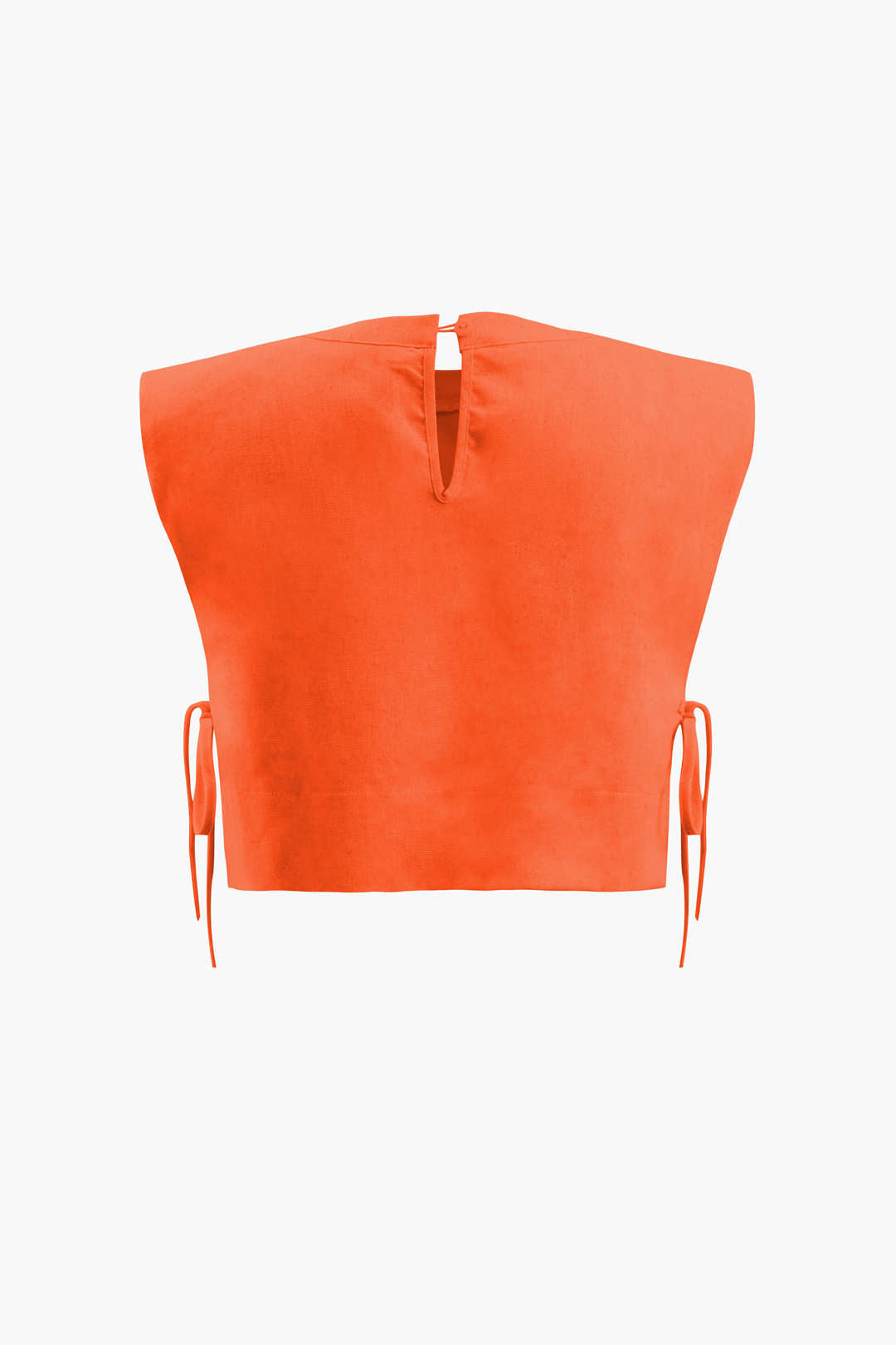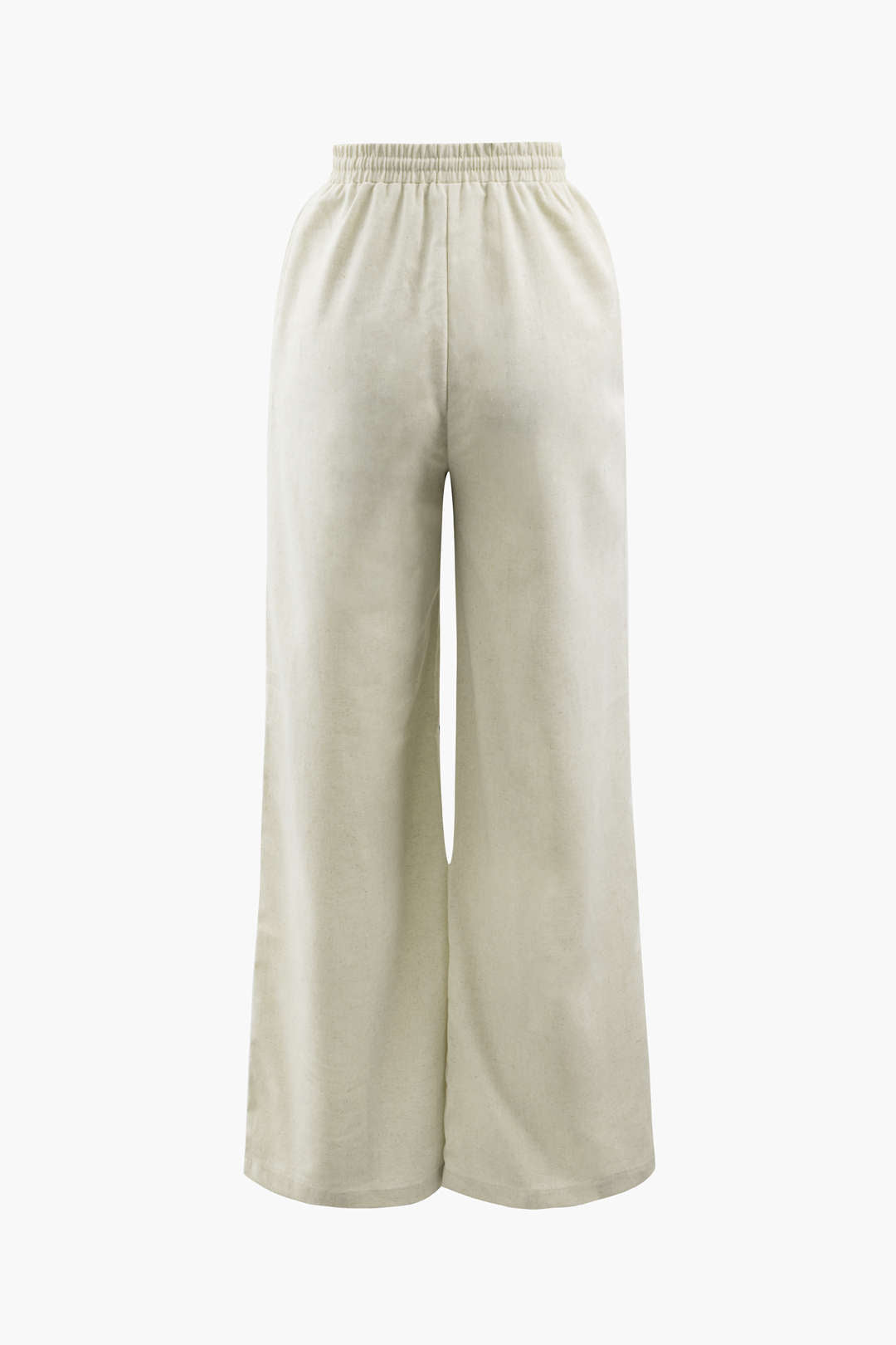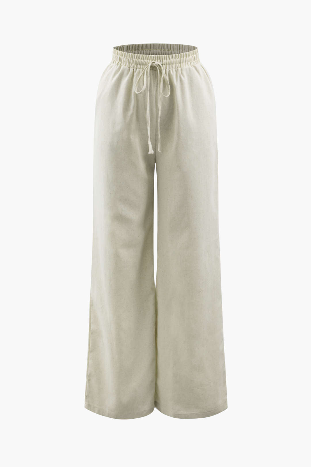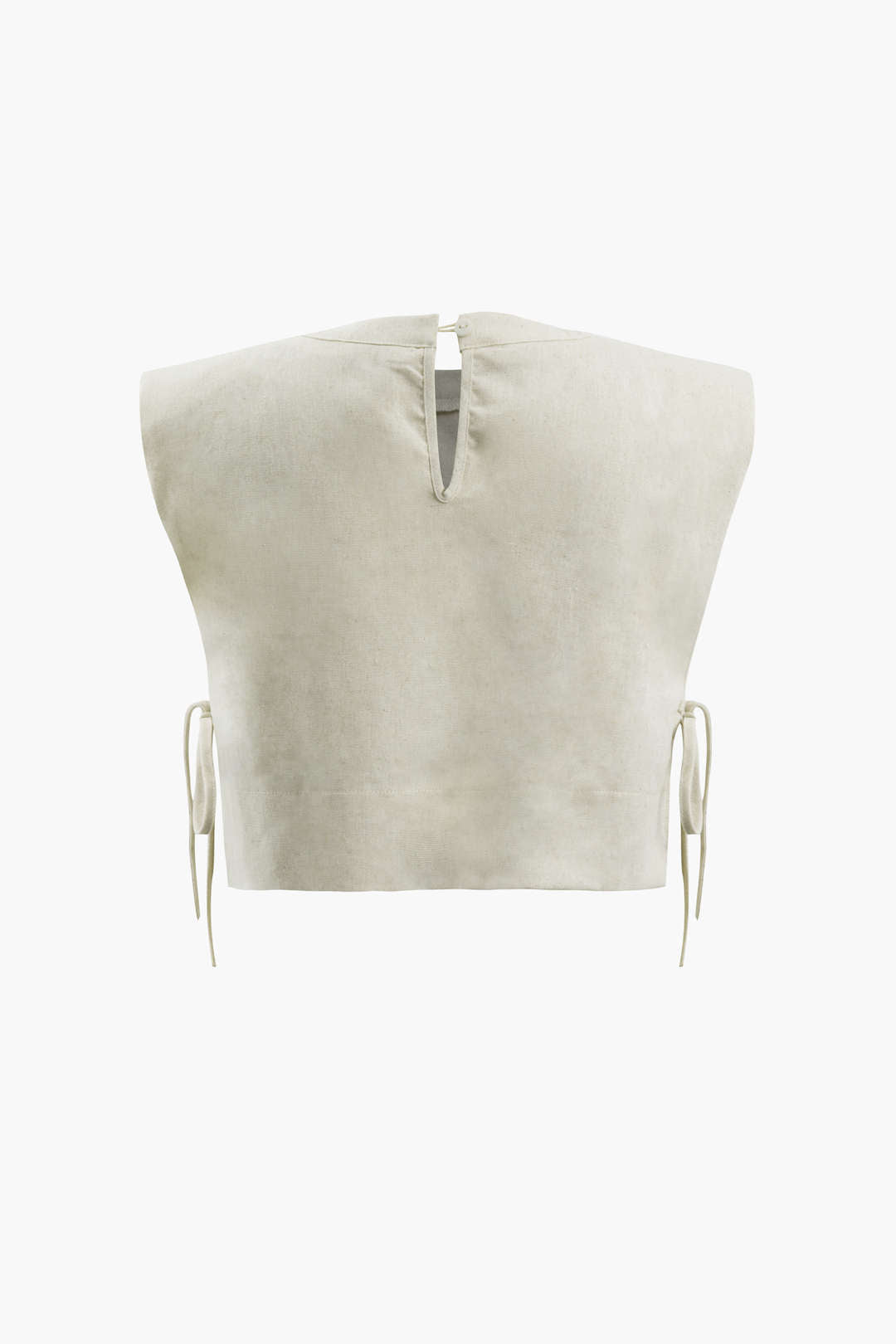 Linen Padded-Shoulder Tie Side Top And Drawstring Pants Set