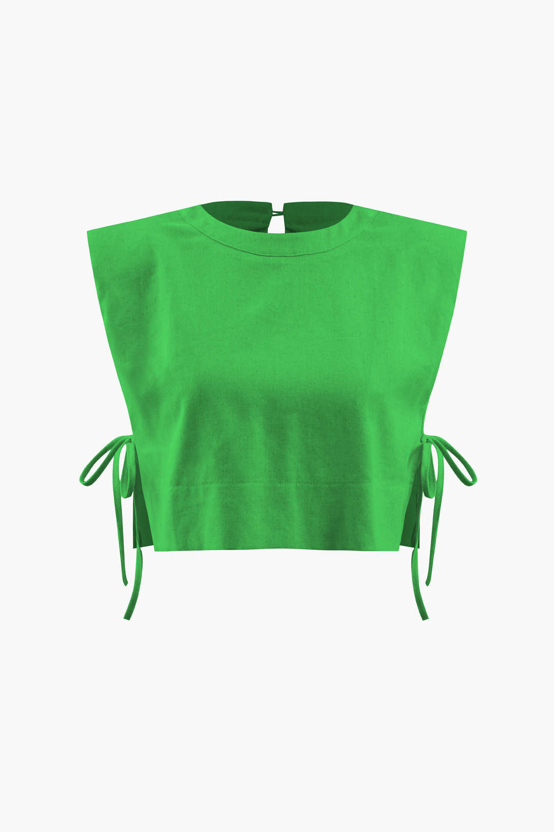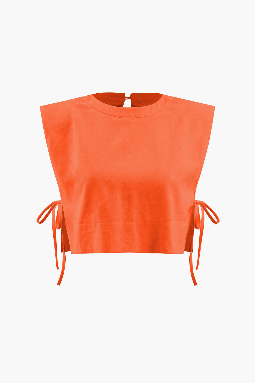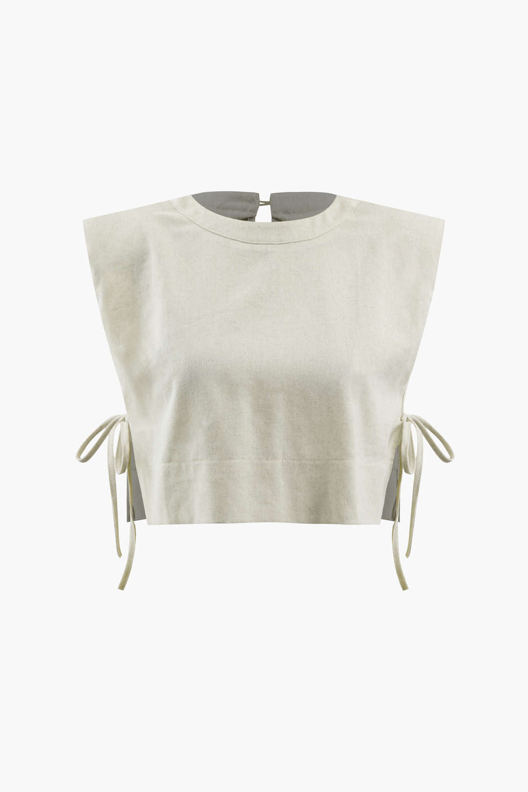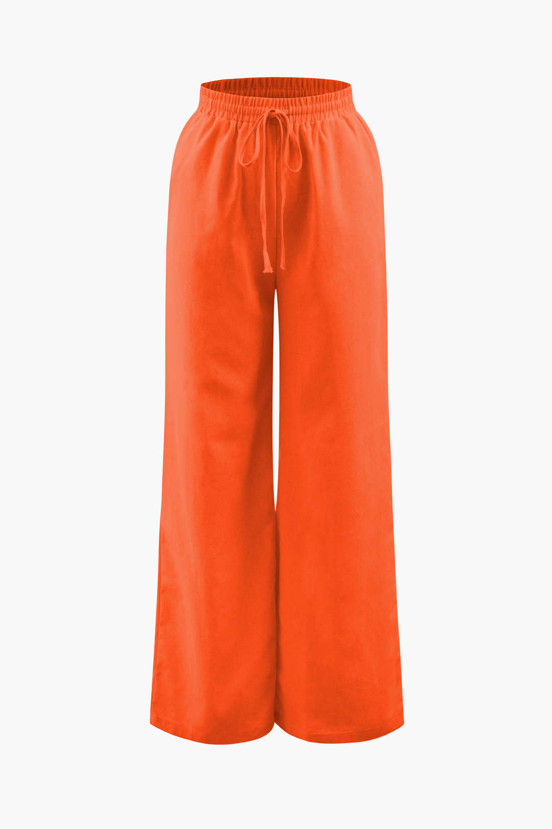 Linen Padded-Shoulder Tie Side Top And Drawstring Pants Set
