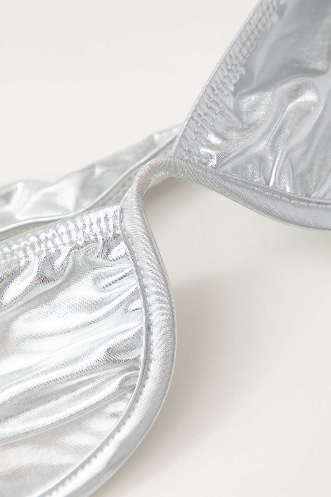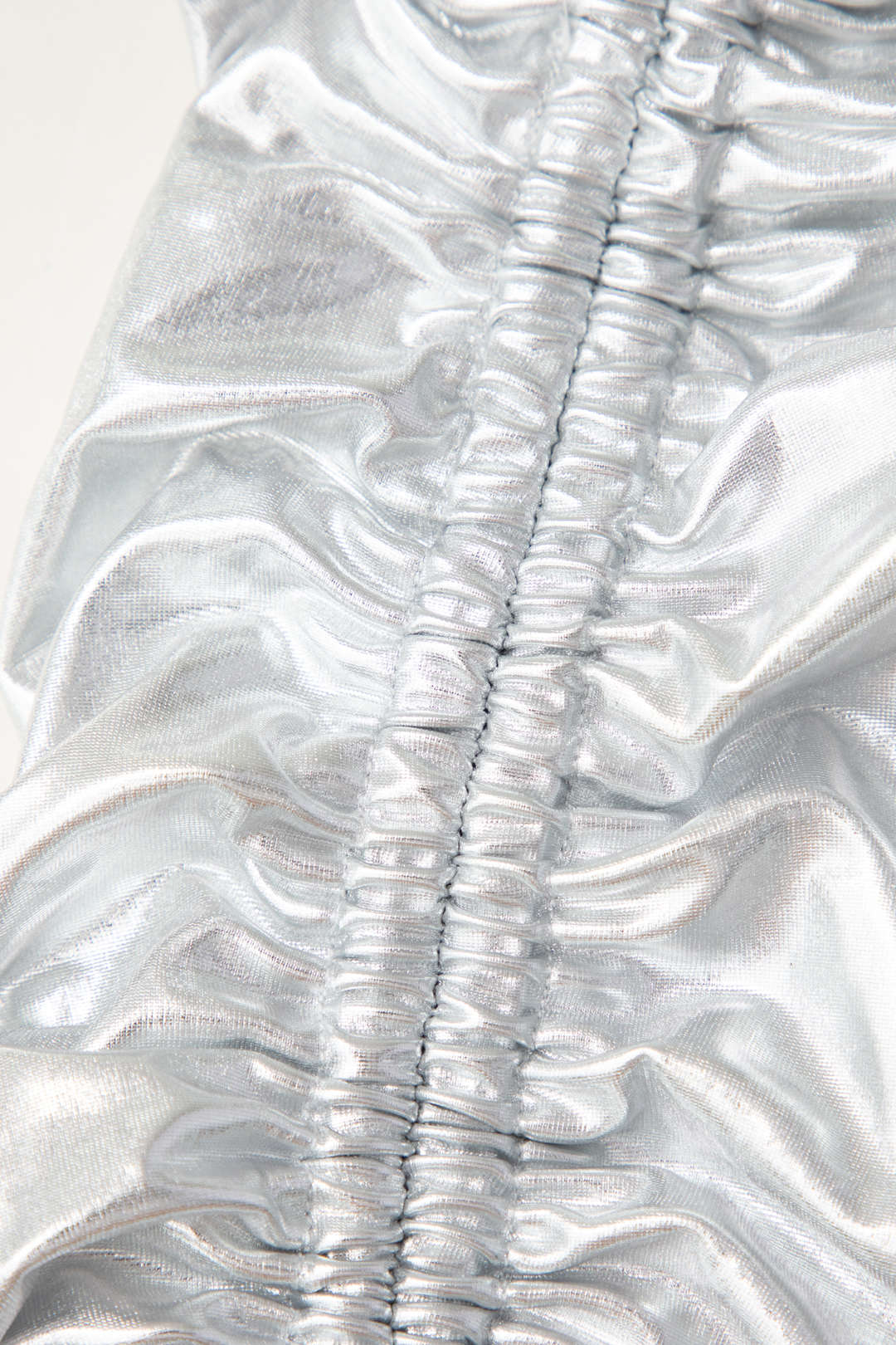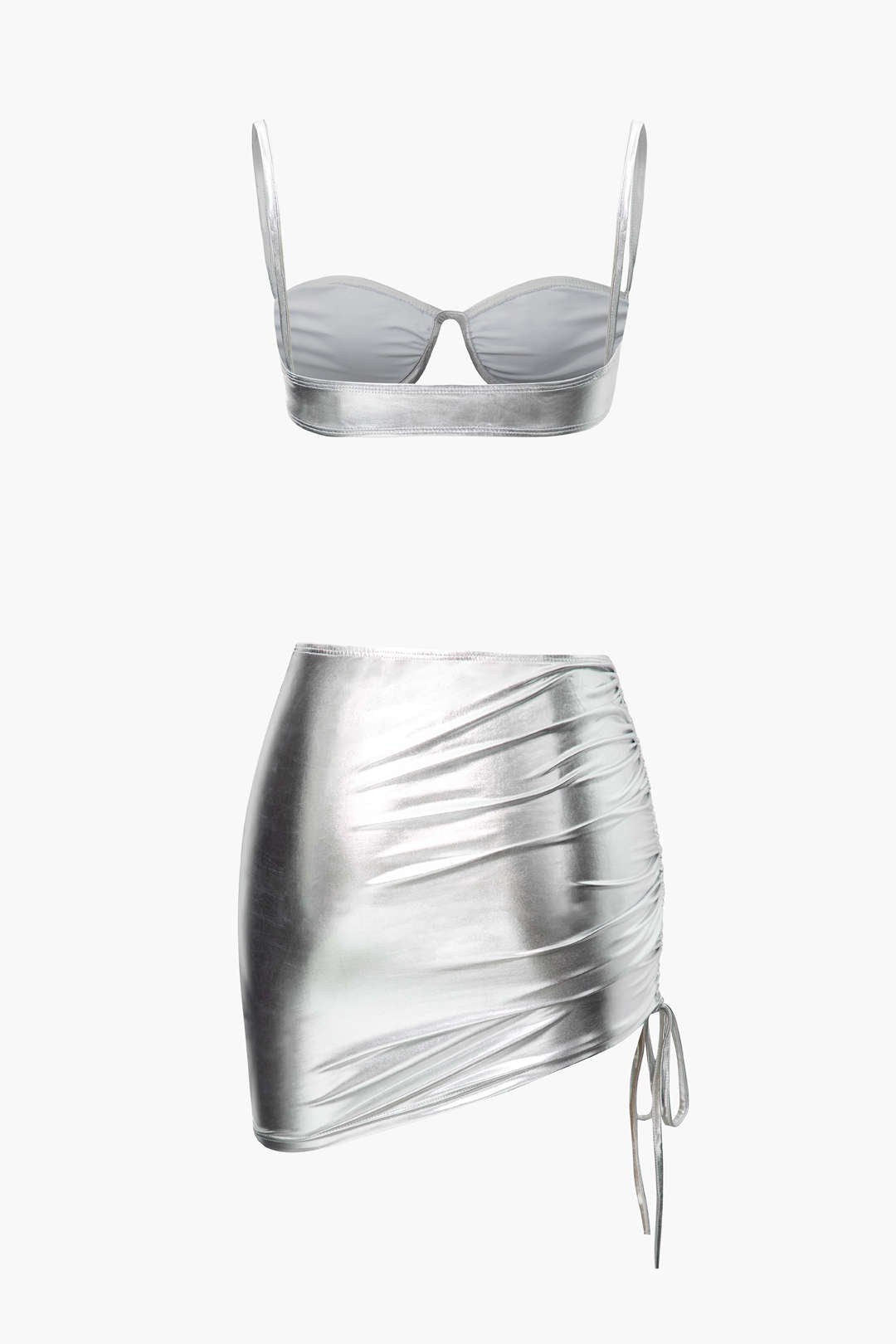 Metallic Bra Top And Asymmetric Drawstring Mini Skirt Set
