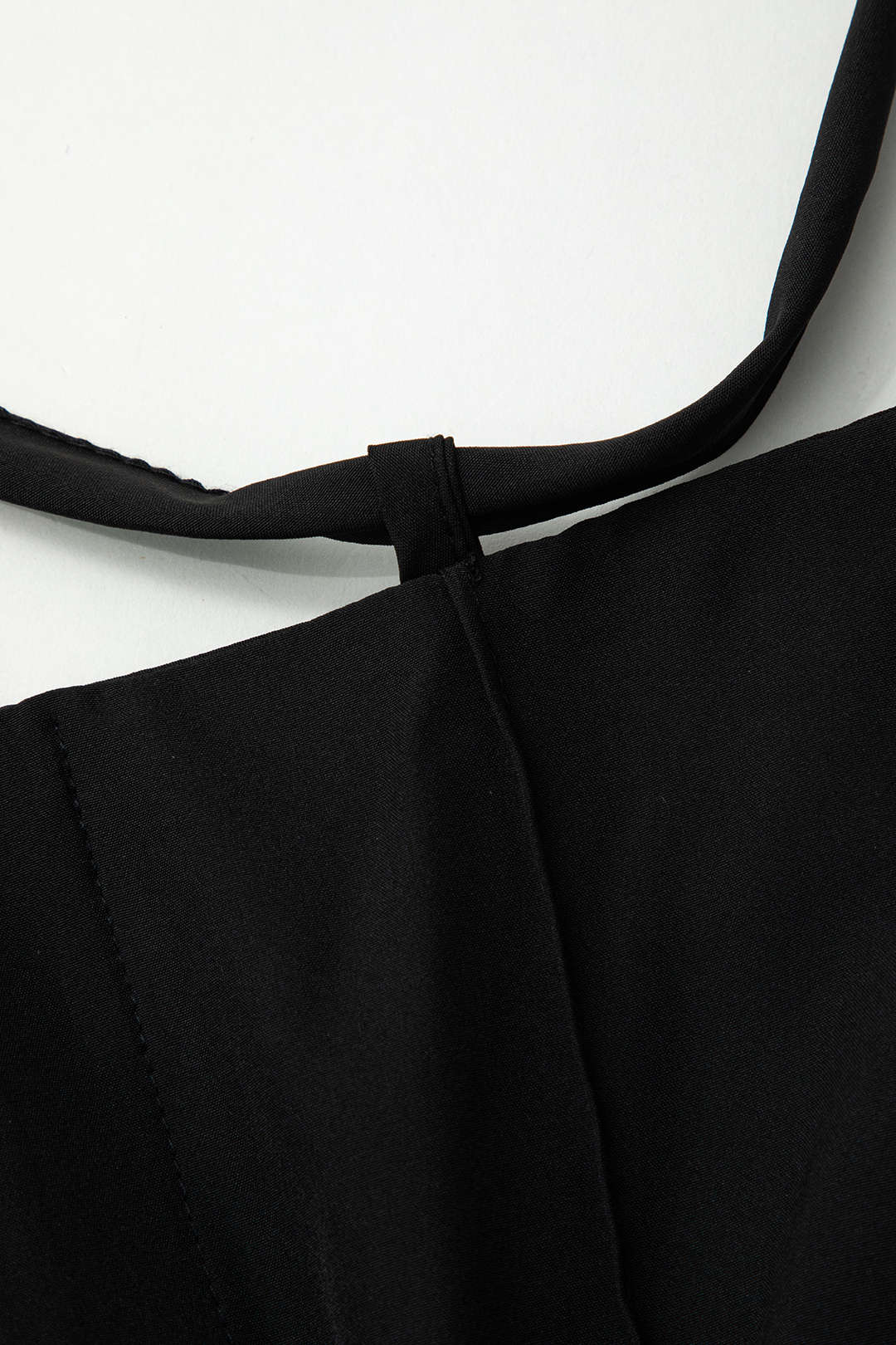 Long Sleeve Halter Tie Crop Top And Wide Leg Pants Set
