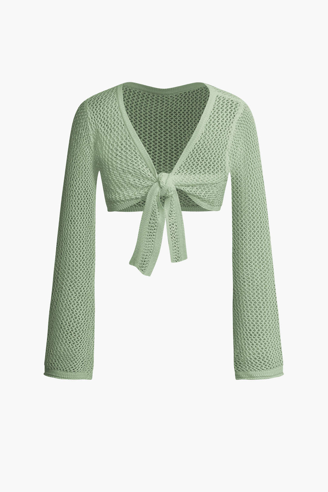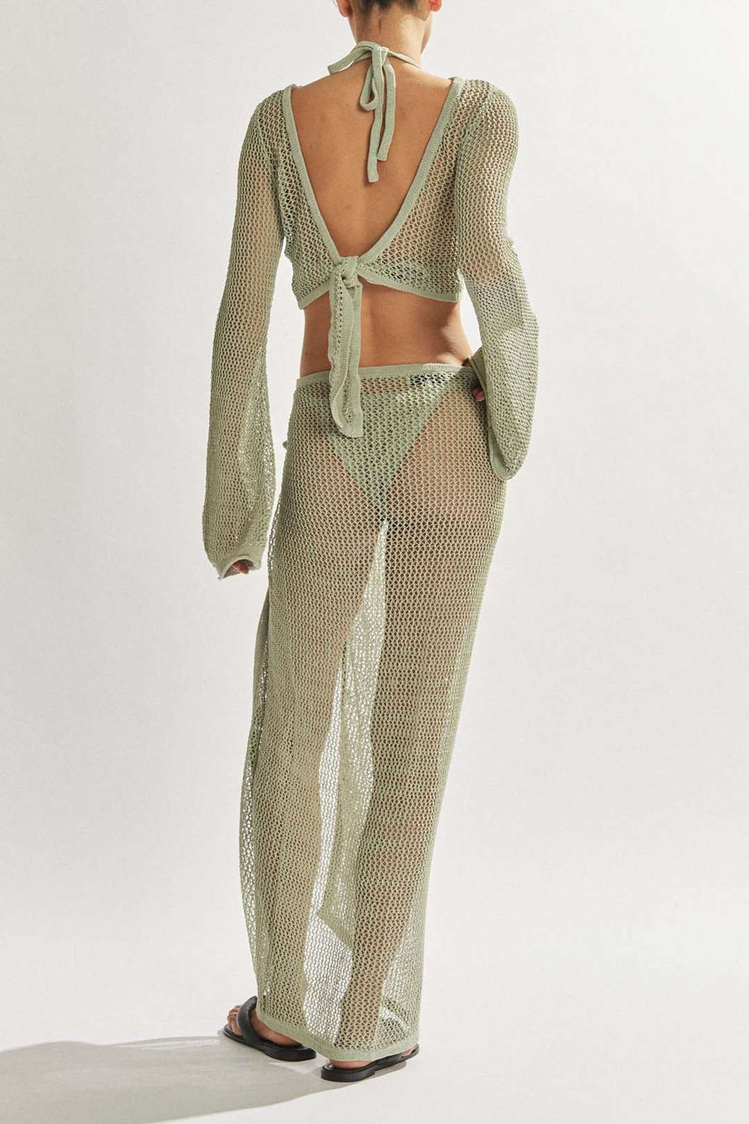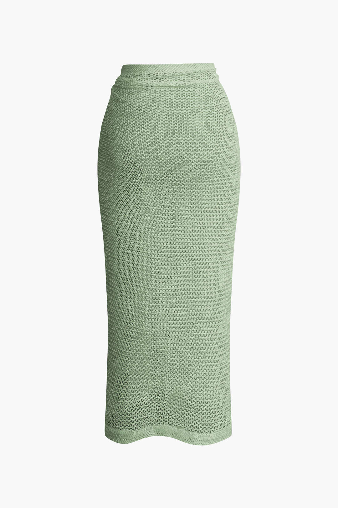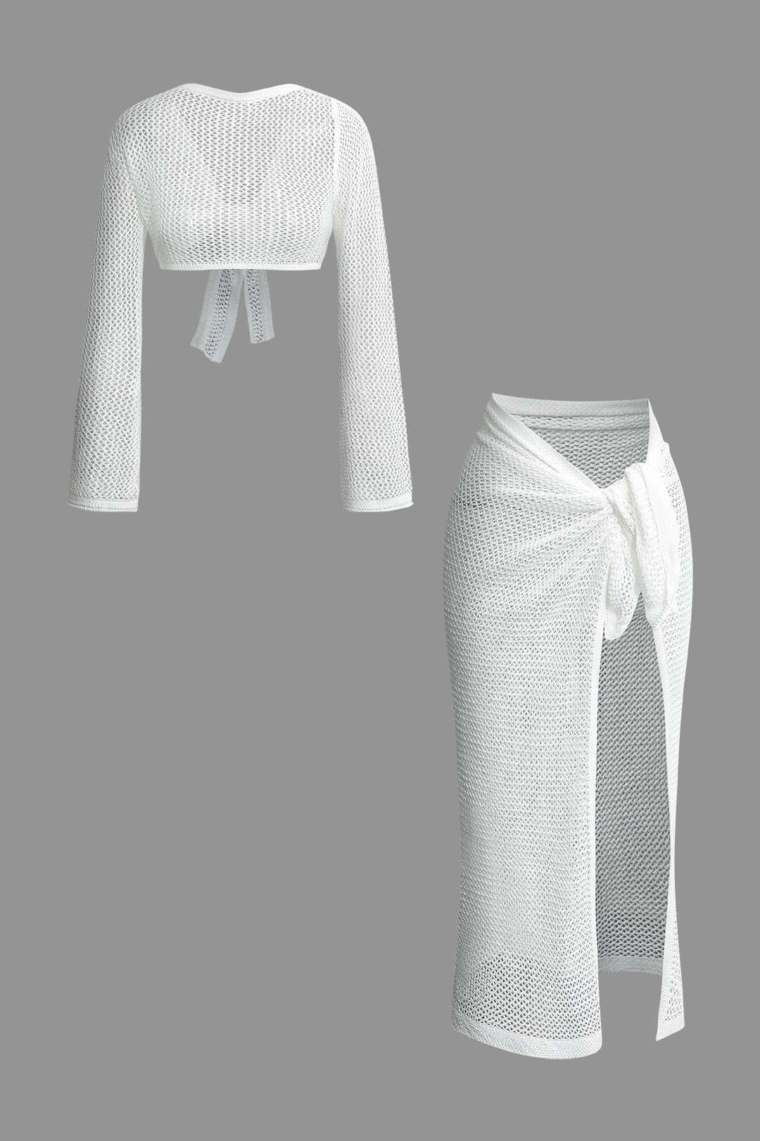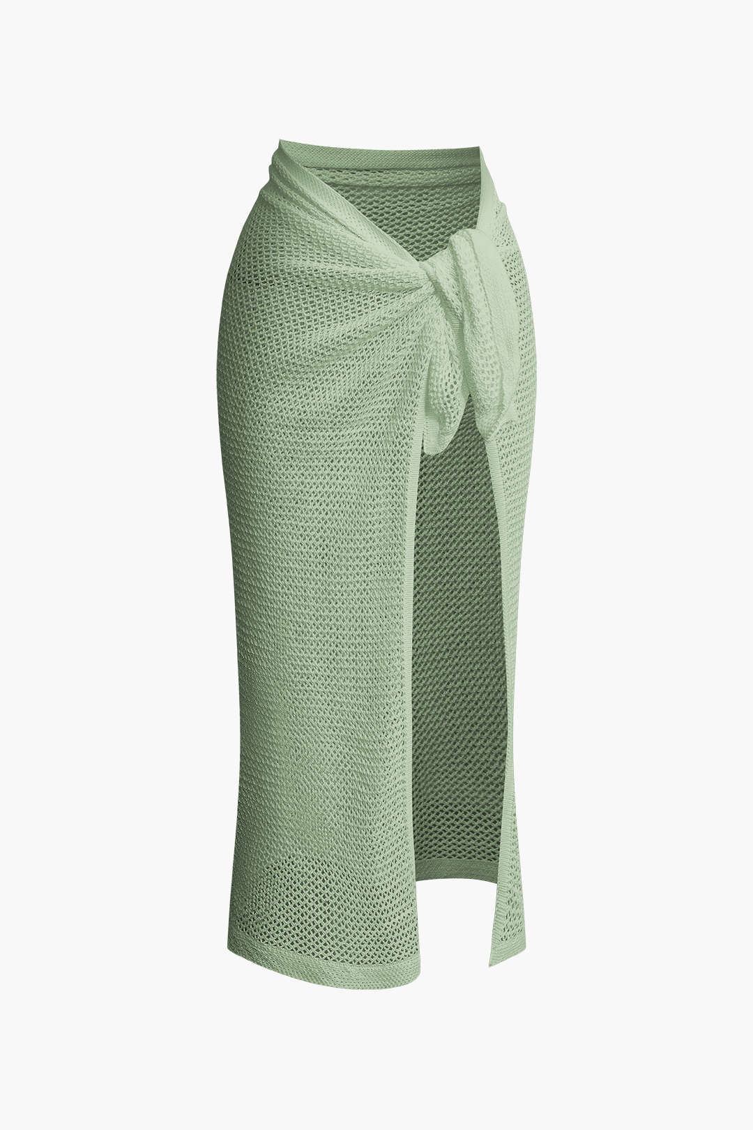 Hollow Out Knot Crop Top And Split Maxi Dress Set
