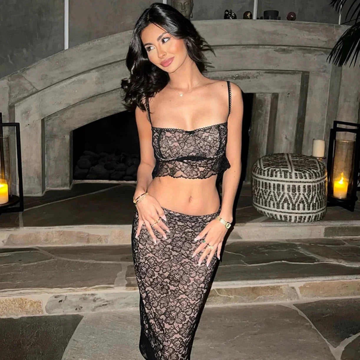 "Unleash your inner confidence with our Nyree Lace Skirt Set in Black. This sleeveless midi skirt set is both sexy and stylish. hugging your body in all the right places. Perfect for any occasion. it's a must-have from IFOMT's Summer Collection."