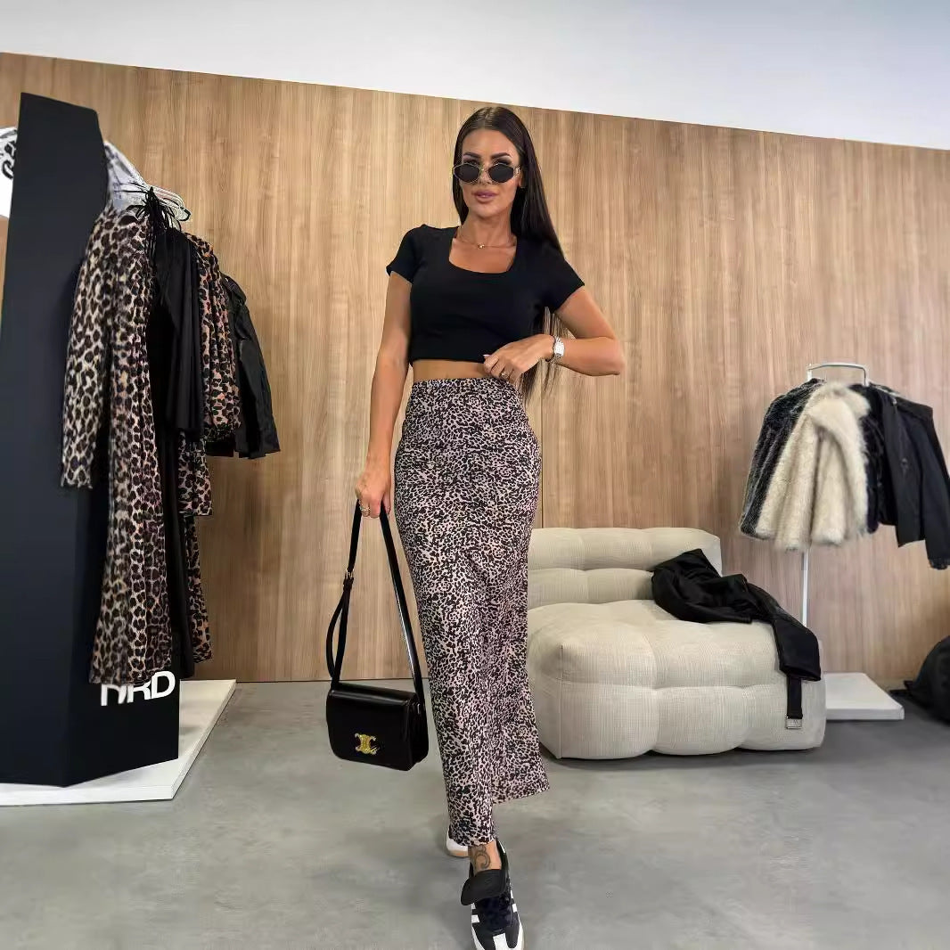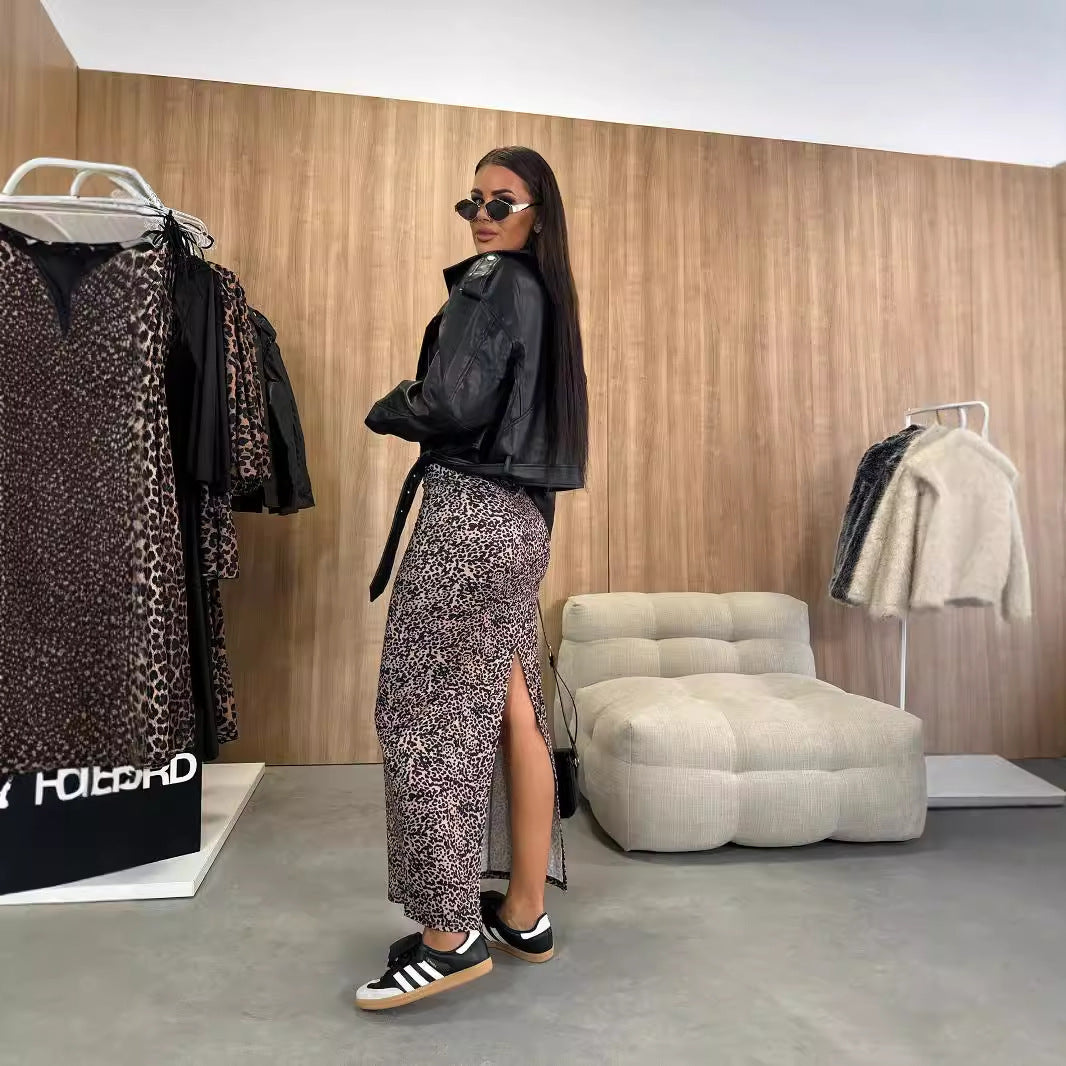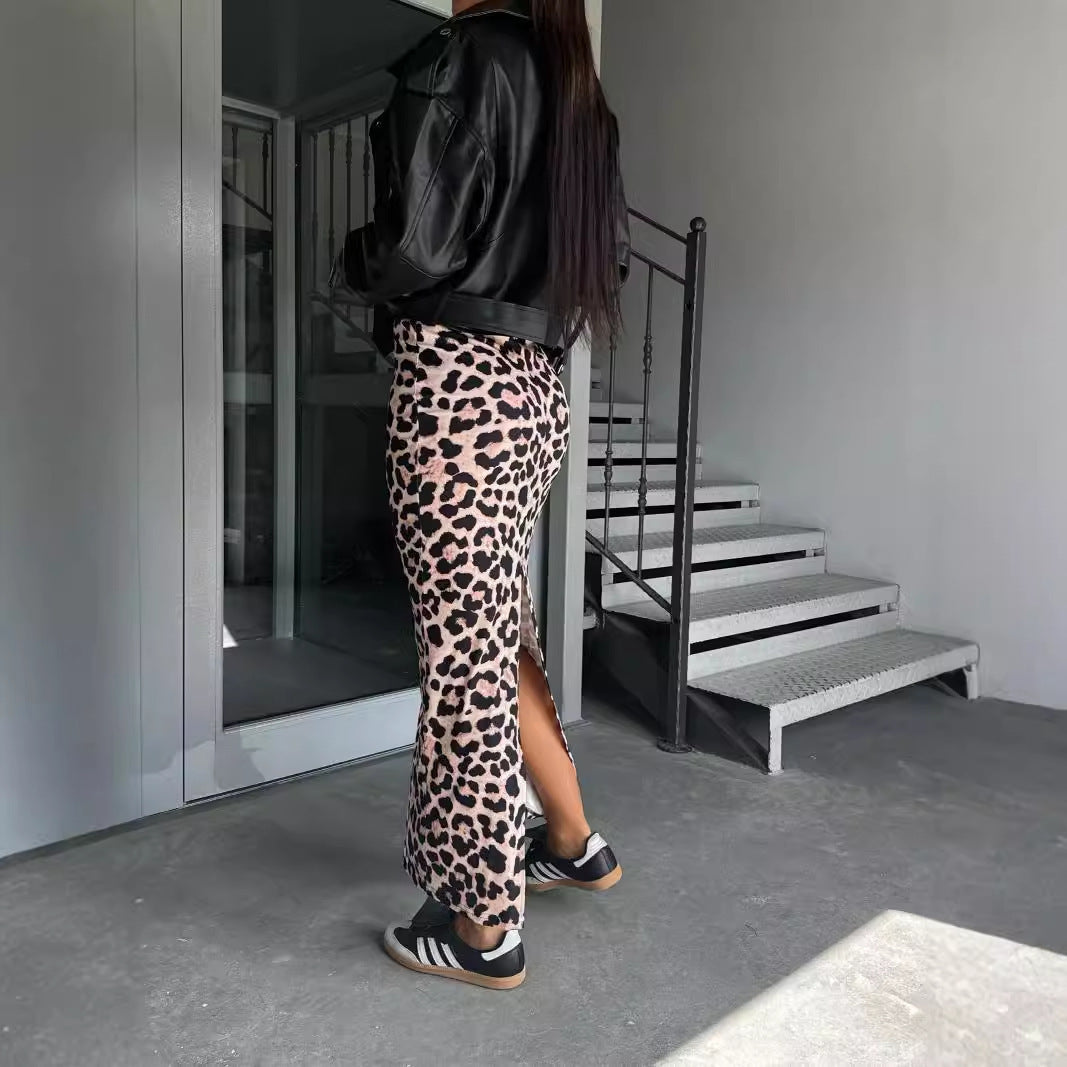 outfit inspo 2024 Spring and Autumn Fashion High Waist Slimming Leopard Print Split Skirt for Women