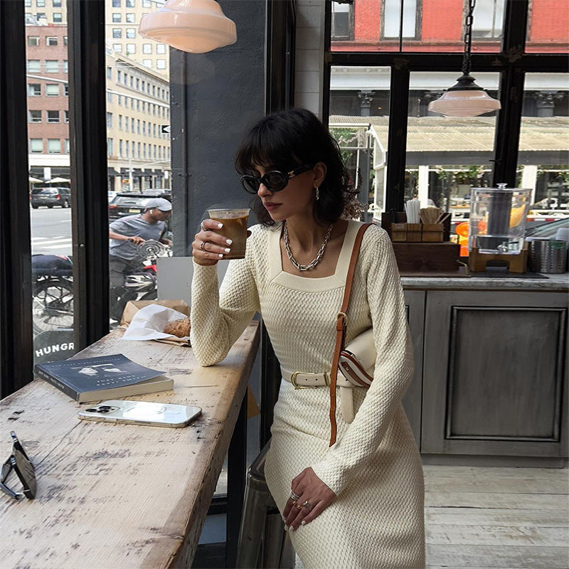 outfit inspo High-End Dress Slim Fit Light Luxury White Sexy Autumn and Winter Dress