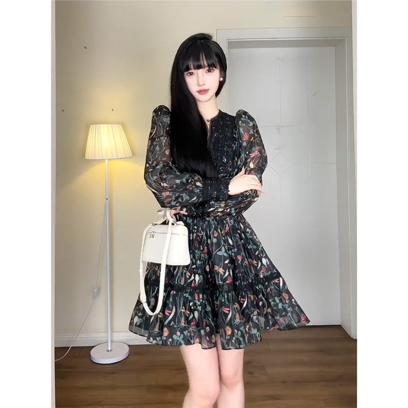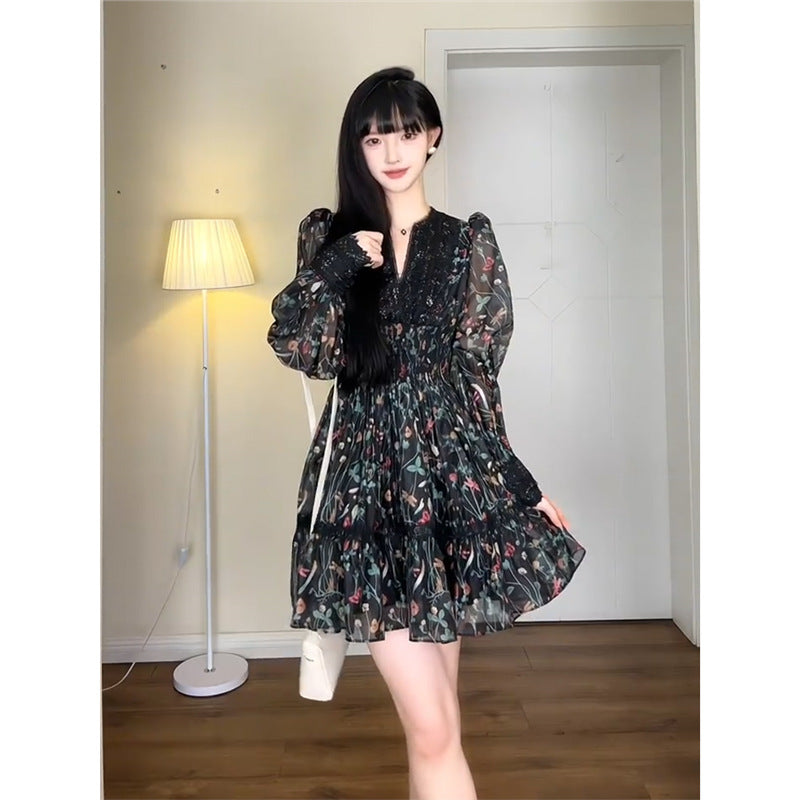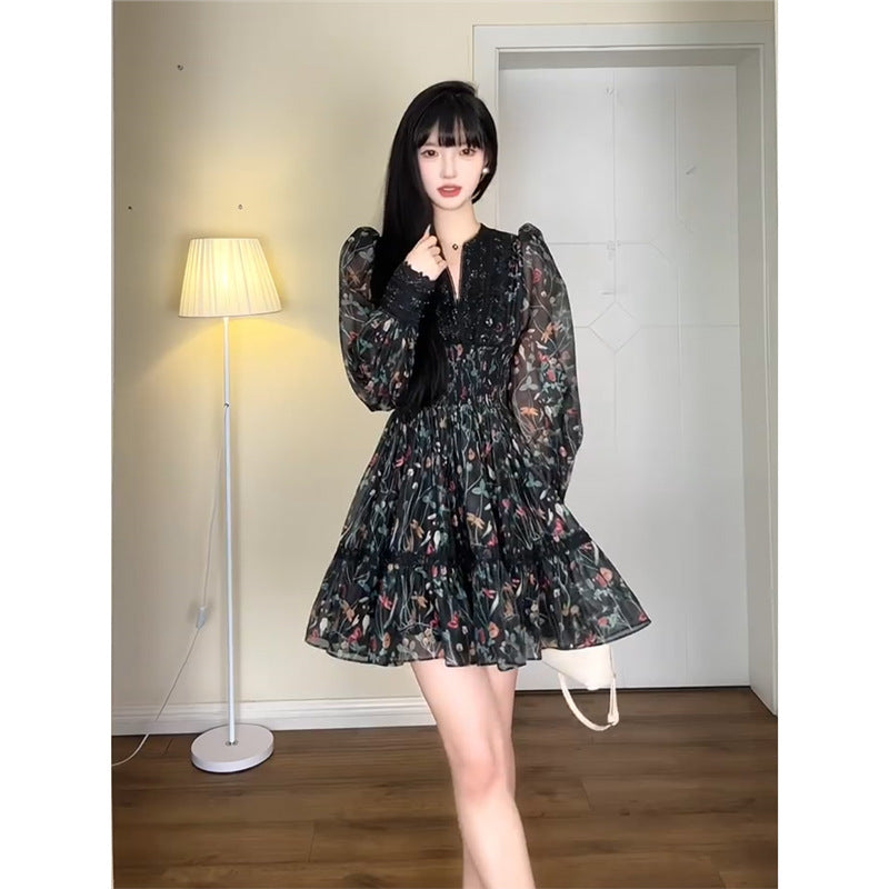 outfit Yt590 Summer Women's Clothing 2024 New Black Floral Dress Elegant Socialite High-End Exquisite Goddess