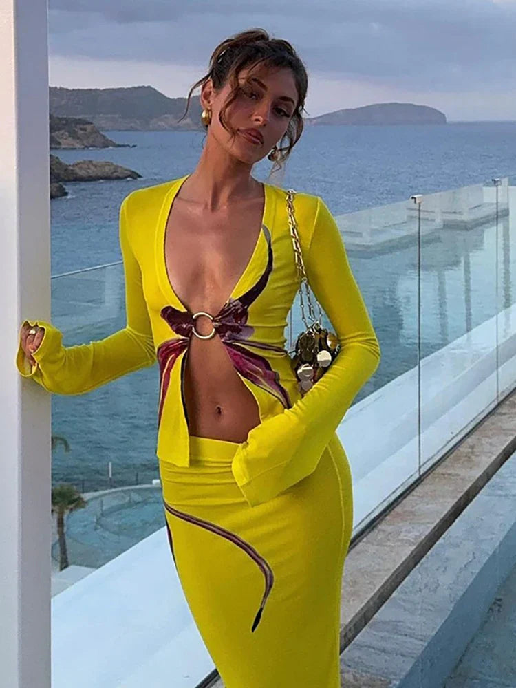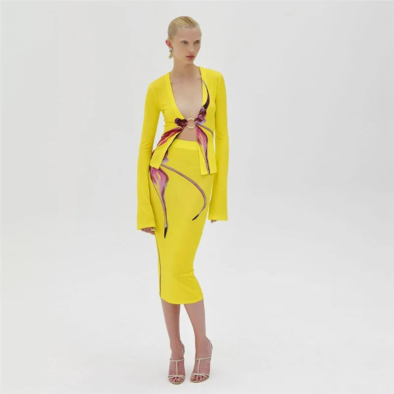 Printed Midi Skirt Set O-Ring Top