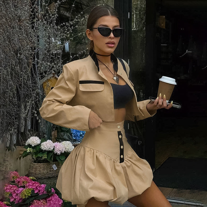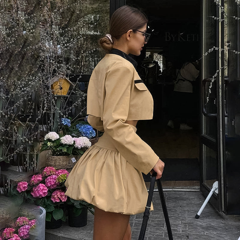 S : Bust:96CM Waist:64CM Hips:90-94CM Top Length:37CM Sleeve:62CM Skirt Length:41CM
