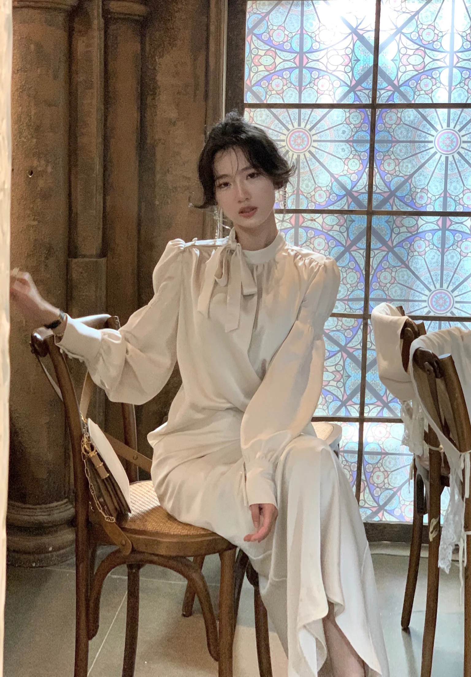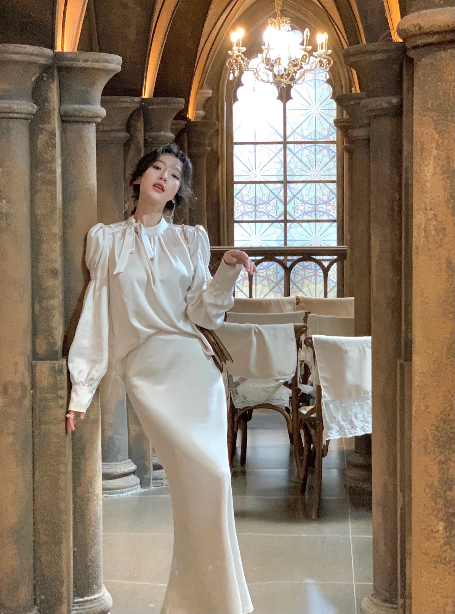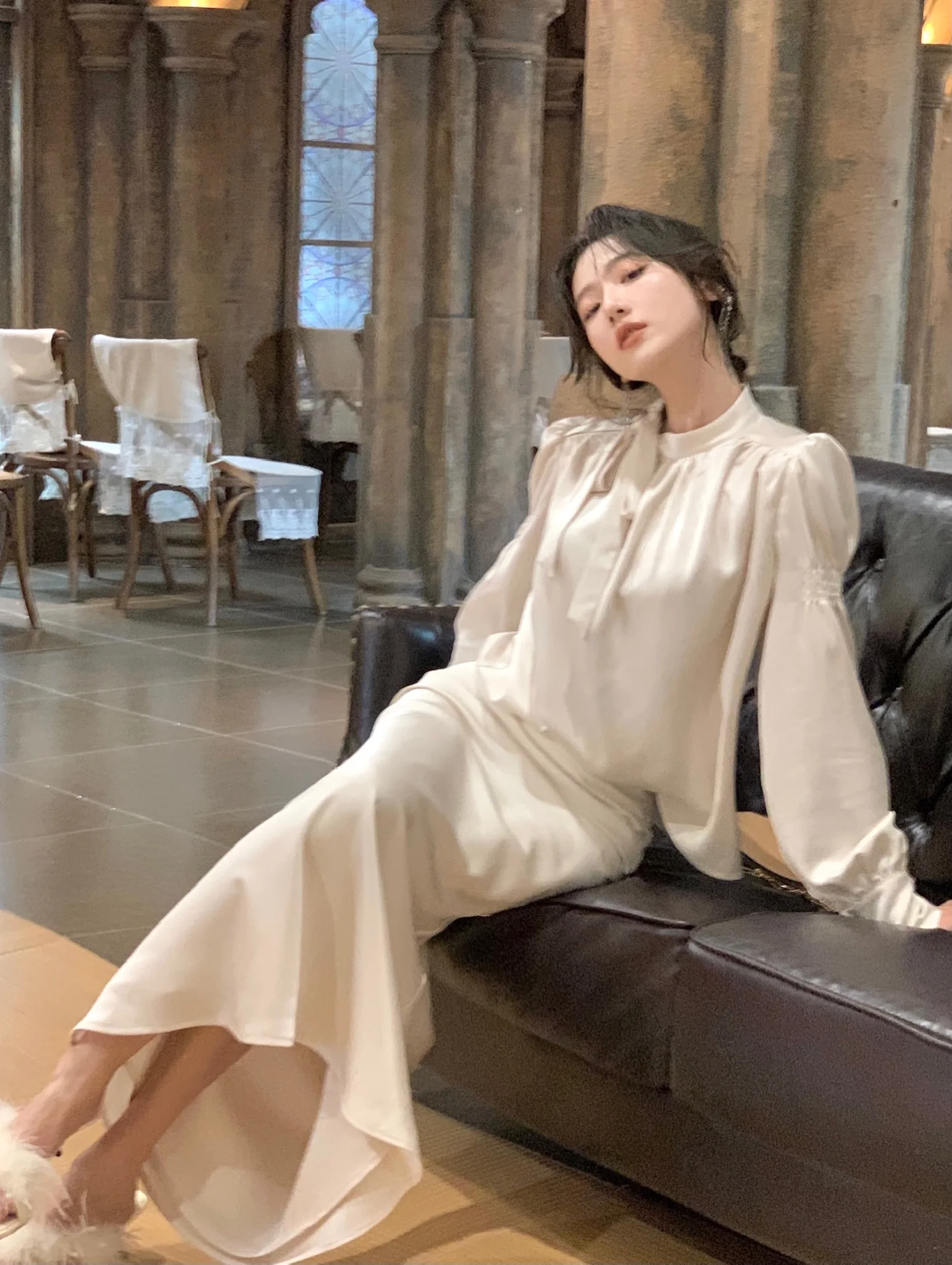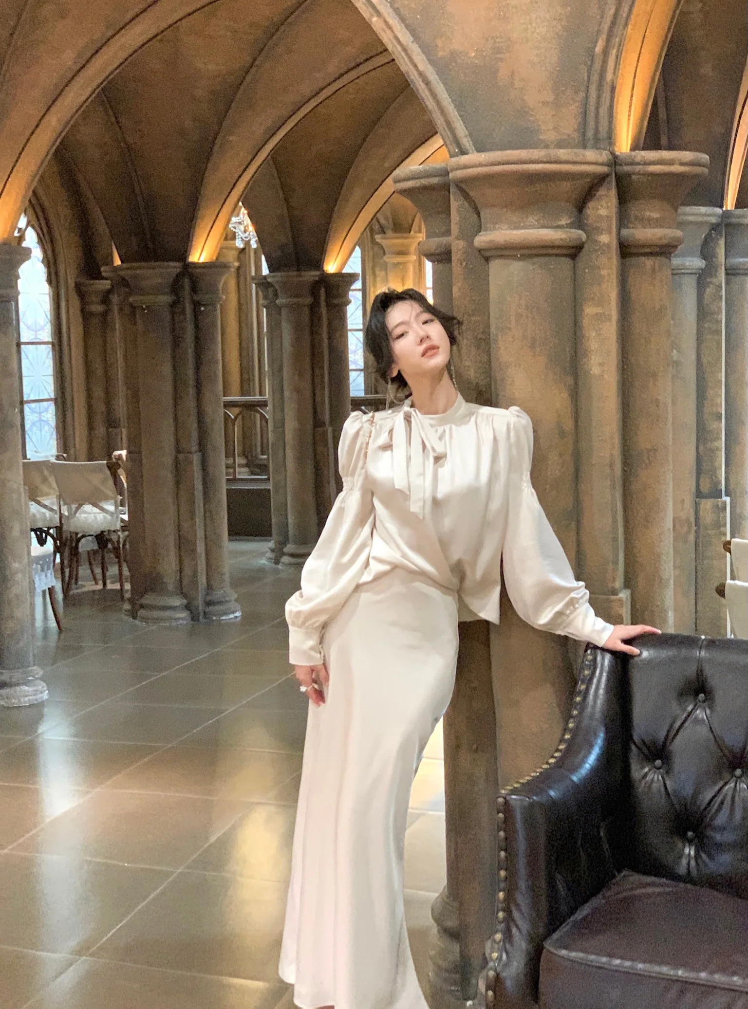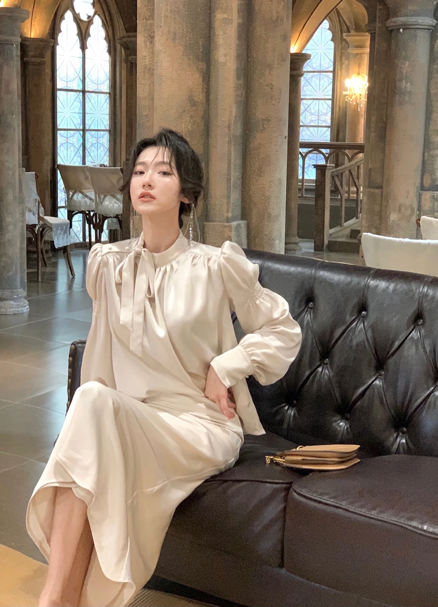 L: Top Length:59cm. Bust:108cm. Sleeve:62cm. Skirt Length:90cm. Waist:70cm . Hip:92cm