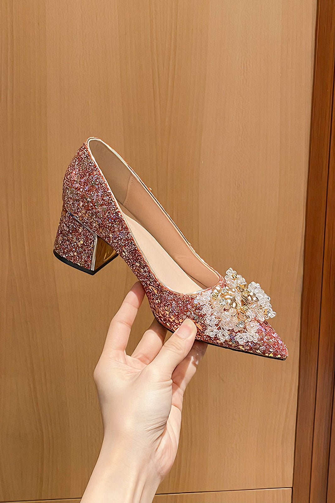 Popular elements: beads. shallow mouth. thick heels